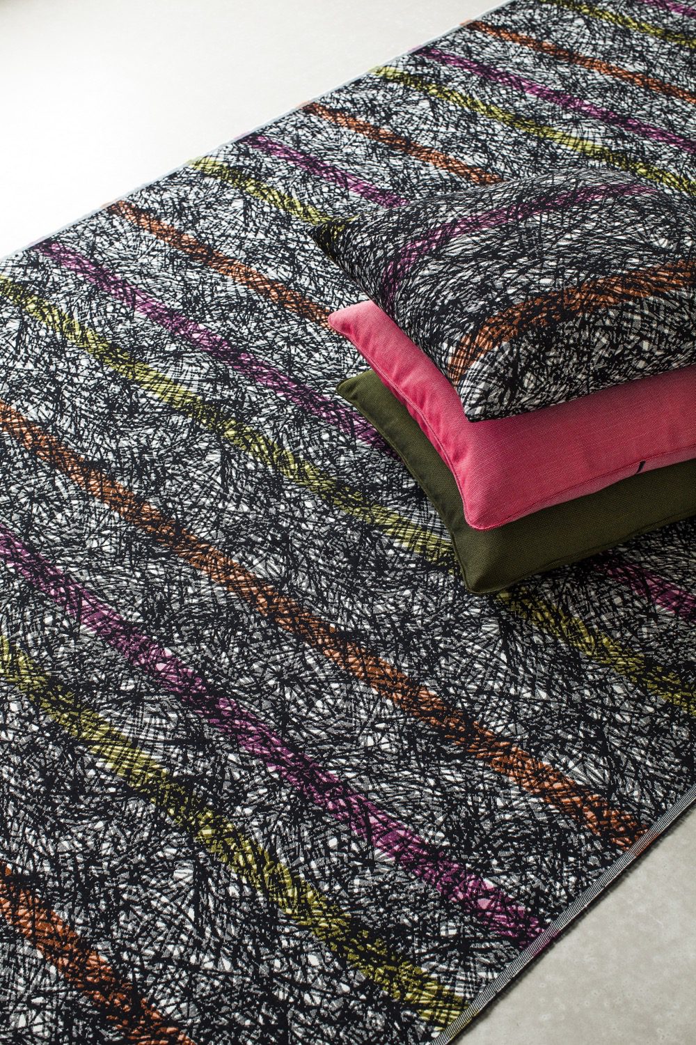 An eclectic range of patterns and textures that delight the senses. Accessoire is something so unusual as a collection in eco-labelled wool with twelve quite different patterns, which grew out of a collaboration between five designers with their own very strong ideas. In this diversity of soft colours and individual expression there is, however, a cohesive harmony. A harmony in which the patterns not only have the black and white warp in common, but also talk to each other in their aesthetic expression. As the name suggests, the idea is that these fabrics can be used to accessorise your room, emphasising a single piece of furniture or adding joy and life to your entire interior design.