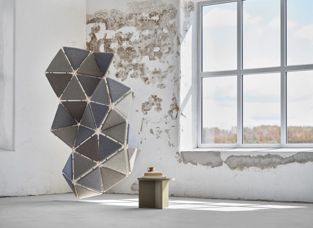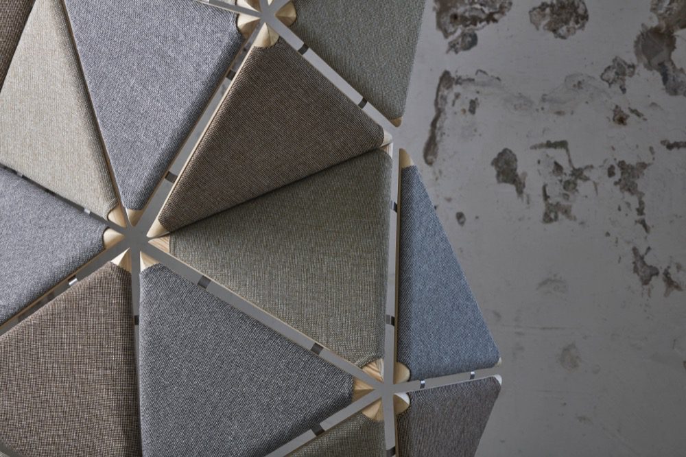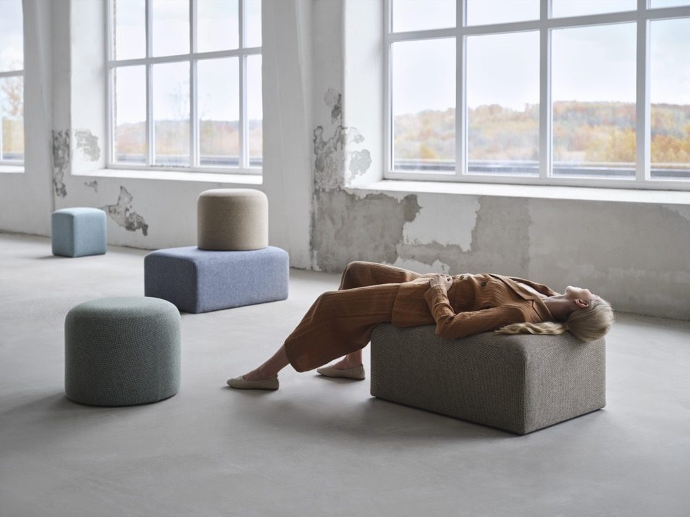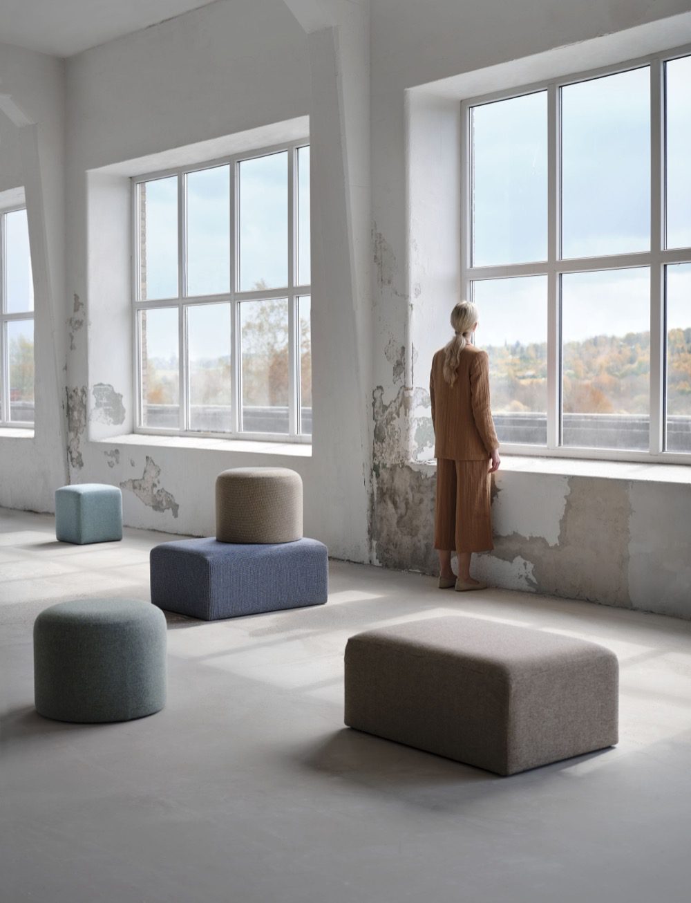 Made of recycled material from our furniture fabric Rami. The result is a stylish clash between raw and elegant, between bone-white and the muted tones. The materials team up to create a dynamic structure where the rami takes its place next to the slightly more low-key wool blend. From a distance, it appears to be one shade, but as you get closer, the marl in the fabric appears. Once you are close up several different colours appear, which merge to become something completely different.