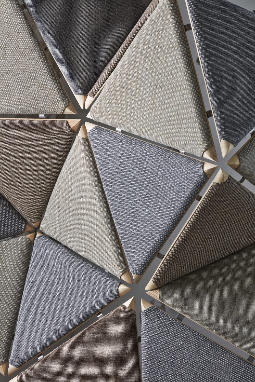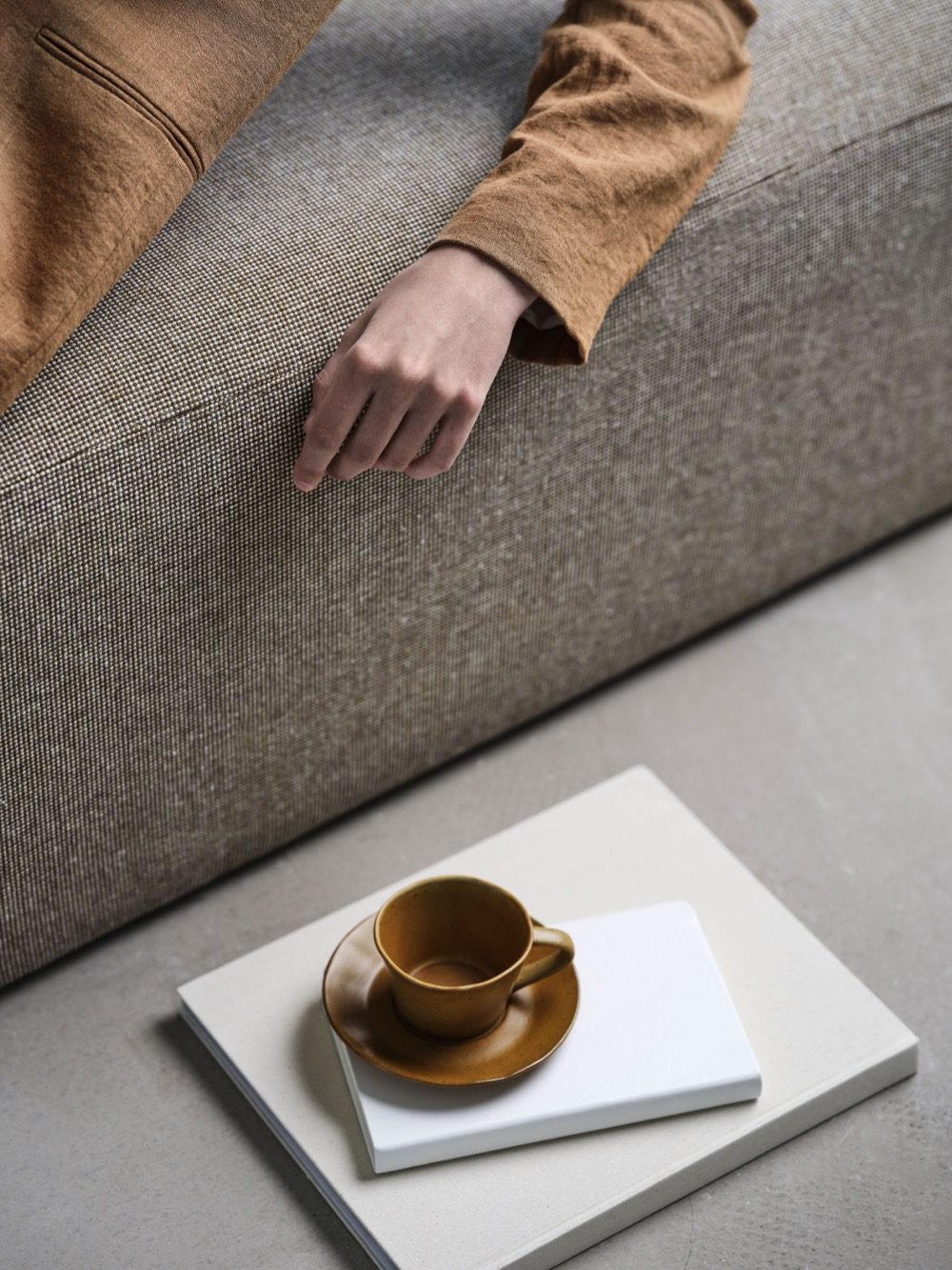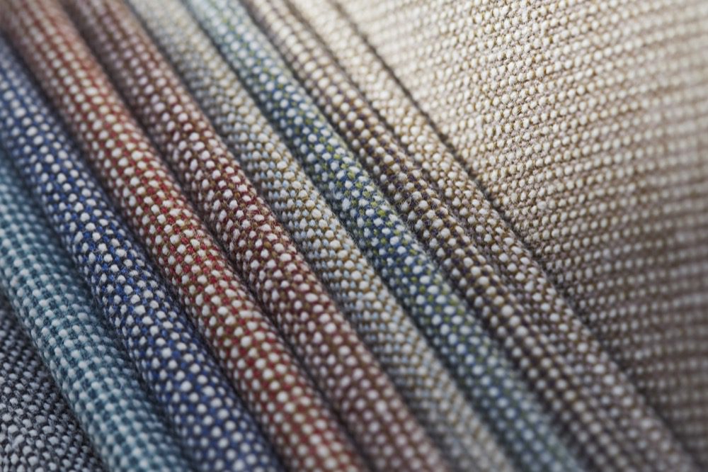 Made of recycled material from our furniture fabric Rami. The result is a stylish clash between raw and elegant, between bone-white and the muted tones. The materials team up to create a dynamic structure where the rami takes its place next to the slightly more low-key wool blend. From a distance, it appears to be one shade, but as you get closer, the marl in the fabric appears. Once you are close up several different colours appear, which merge to become something completely different.