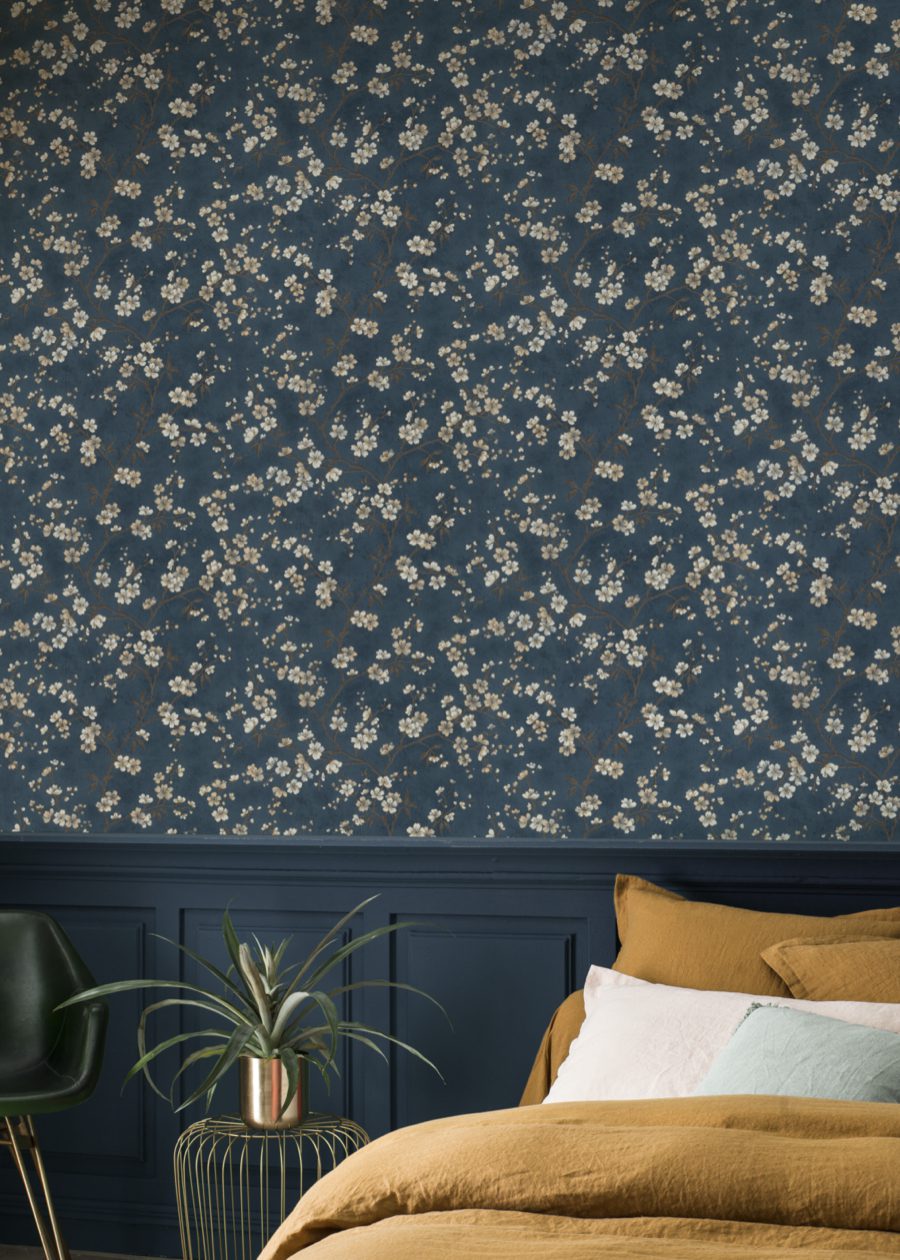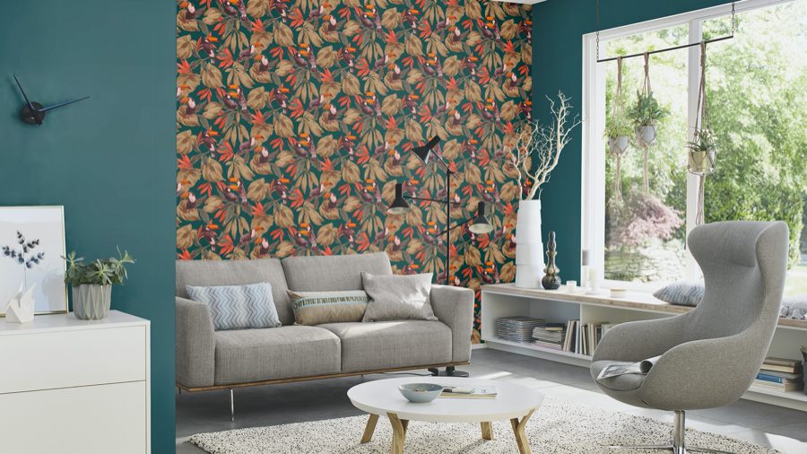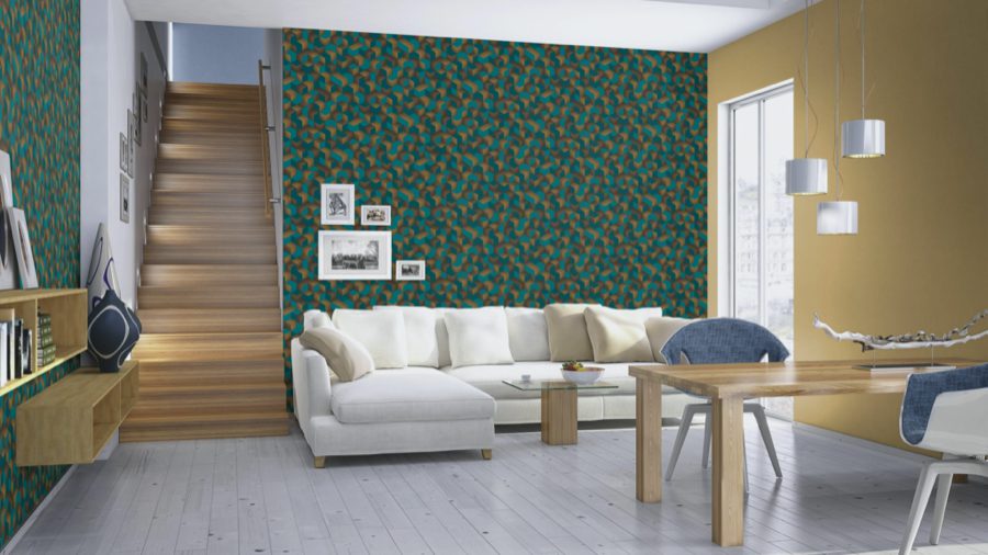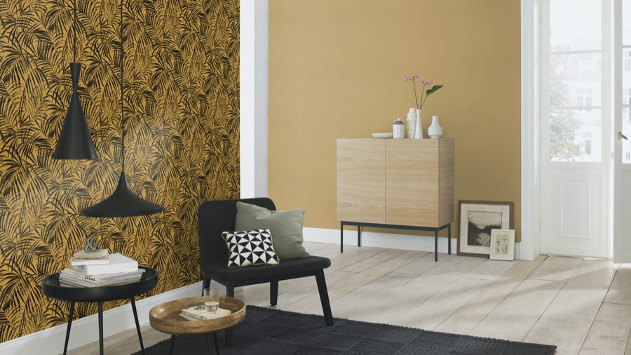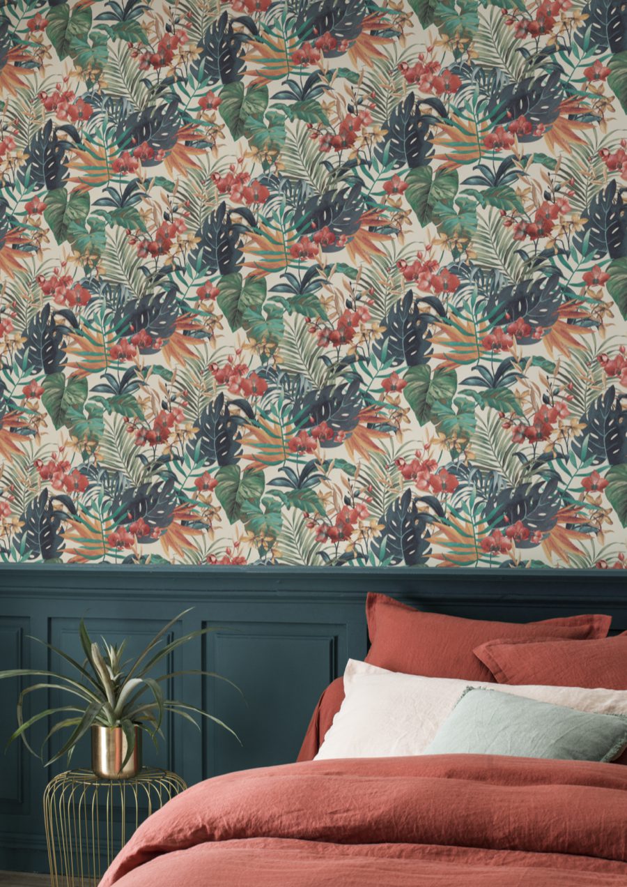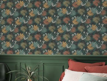 The Denzo II wallpaper collection is inspired by the Parisian nature: charming, unique, self-assured and always with a personal sense of style. A combination of luxury with natural elements, striking petrol blue and tangerine colours, or hints of silver and gold deliver a beautiful collection that always looks great together in a pallette designed to mix and match. Outsized creepers and leaves, shimmering fabric-look designs and 3D-effect geometric patterns will ensure a stunning wall haute couture makeover.