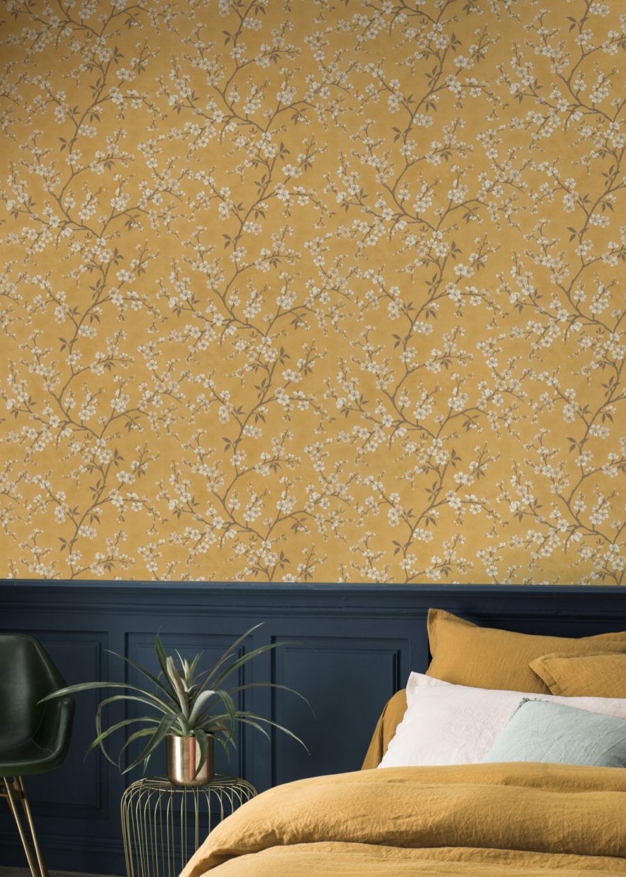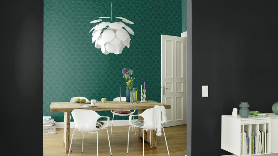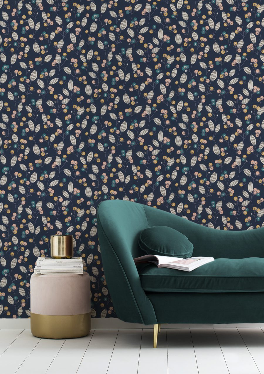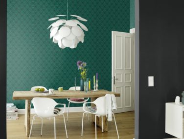 The Denzo II wallpaper collection is inspired by the Parisian nature: charming, unique, self-assured and always with a personal sense of style. A combination of luxury with natural elements, striking petrol blue and tangerine colours, or hints of silver and gold deliver a beautiful collection that always looks great together in a pallette designed to mix and match. Outsized creepers and leaves, shimmering fabric-look designs and 3D-effect geometric patterns will ensure a stunning wall haute couture makeover.