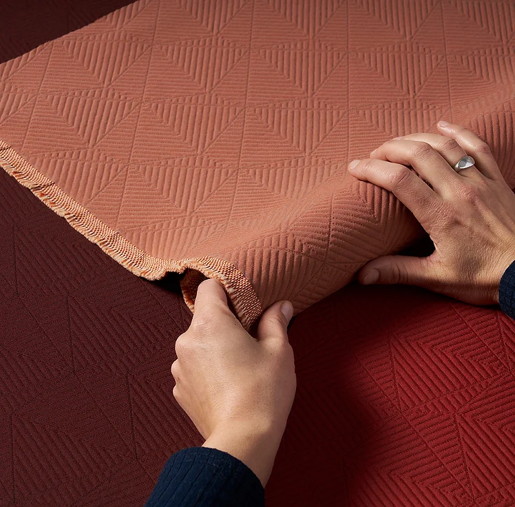 A puffy-patterned performer.Hillside shows off the dimensional potential of matelassé construction with a modern geometric pattern that adds a quilty texture to soften up spaces. Perfect for today’s hybrid work habits, Hillsides uplifting texture and color transform spaces inside and out. The enhanced lightfastness ensures this product performs while transform work and social spaces into outdoor oases of positive productivity. Of course, they work wonders indoors too.
