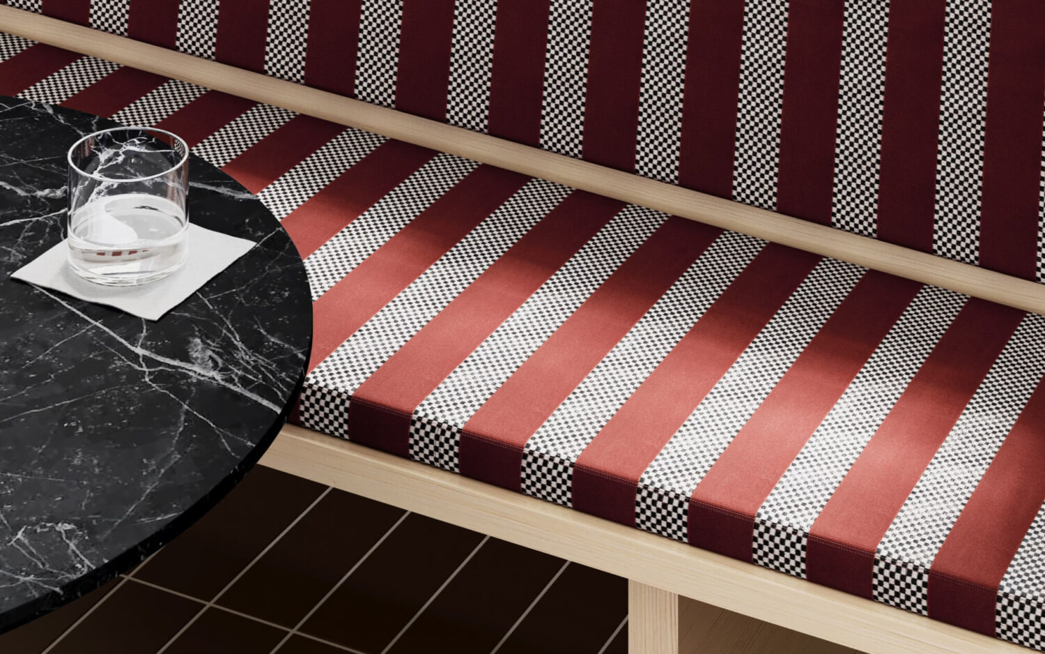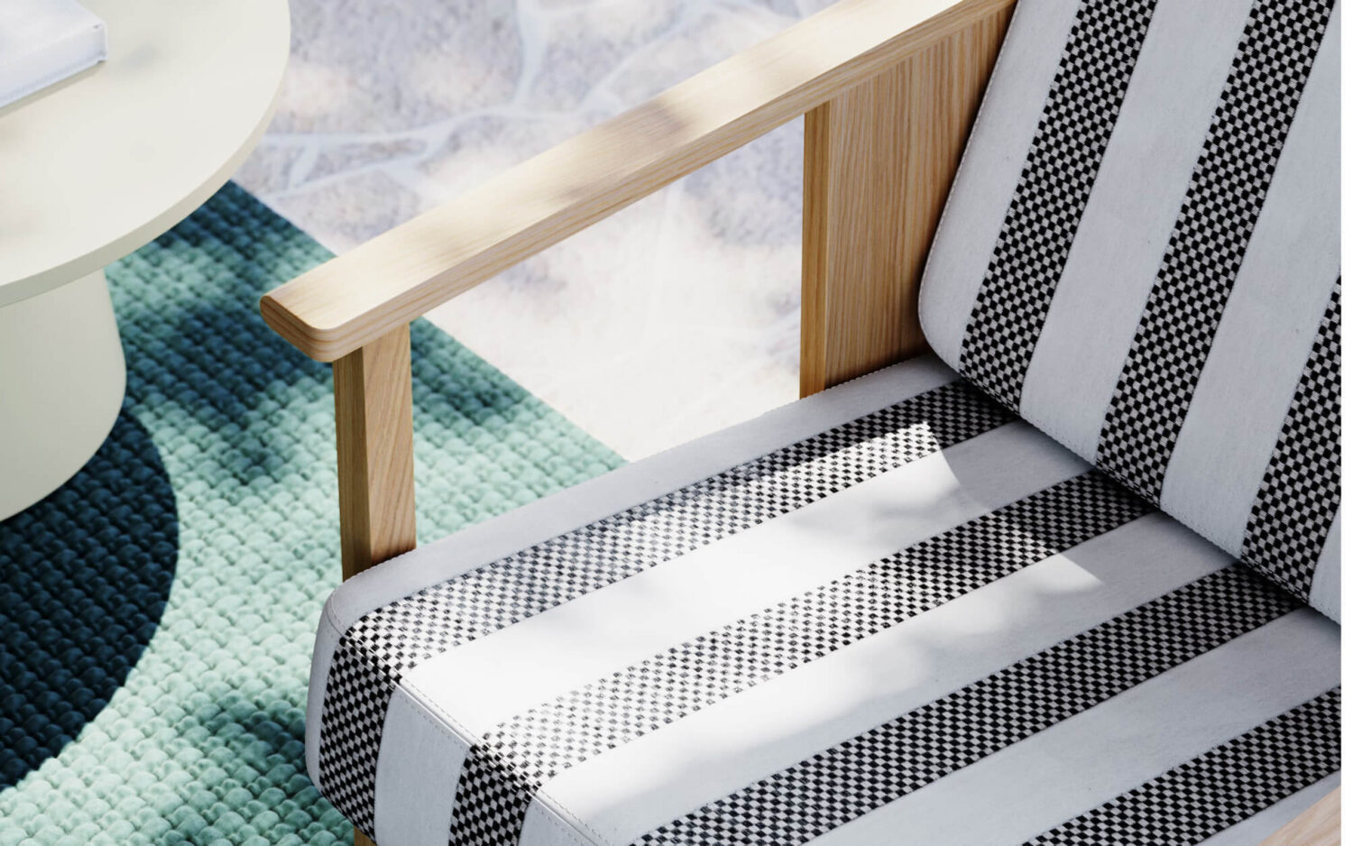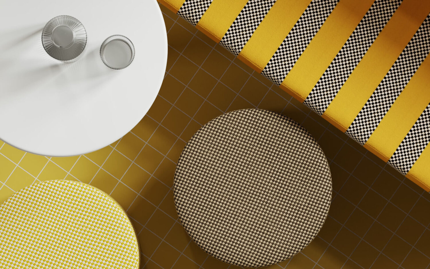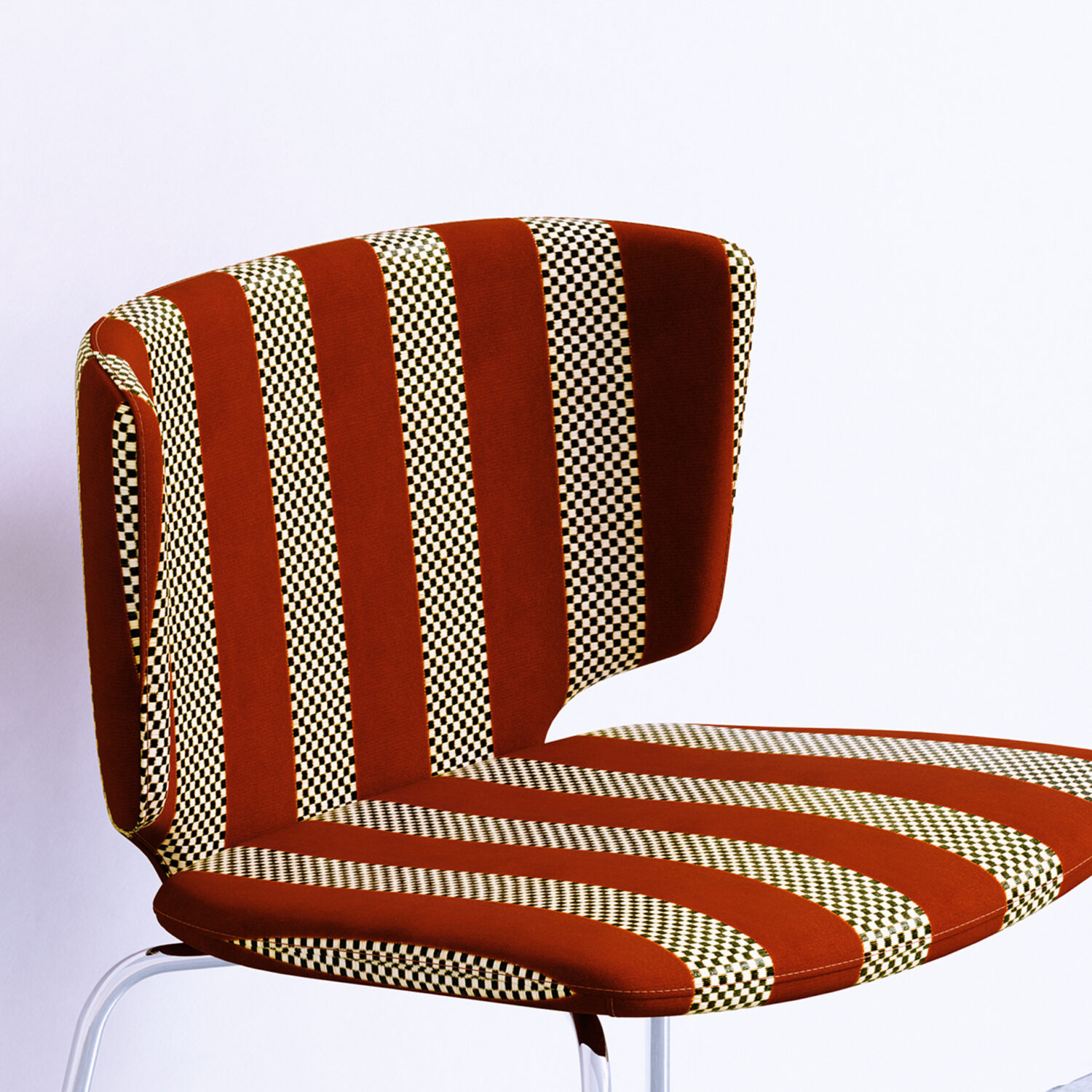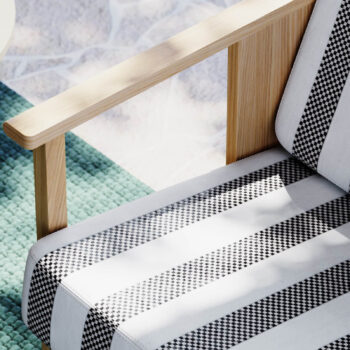 Racetrack brings together a clever contrast of sumptuous velvet with natural raffia-like yarn texture. This intricate design has been crafted for both outdoor and indoor use in Italy with enthusiasm for every detail. Its checkered motif creates an attention-grabbing visual that’s available in six saturated colors and delivers unexpected high-performance.