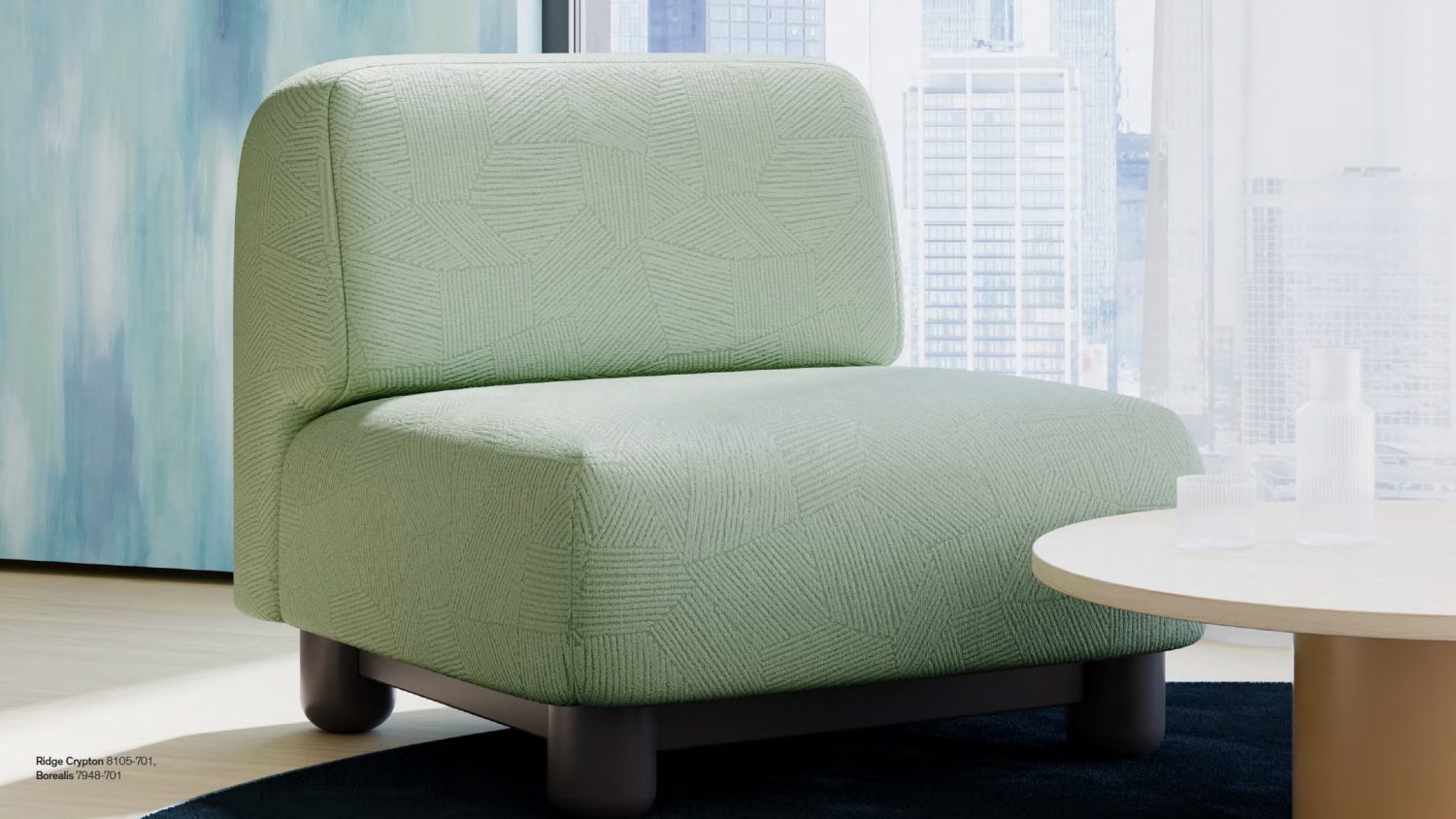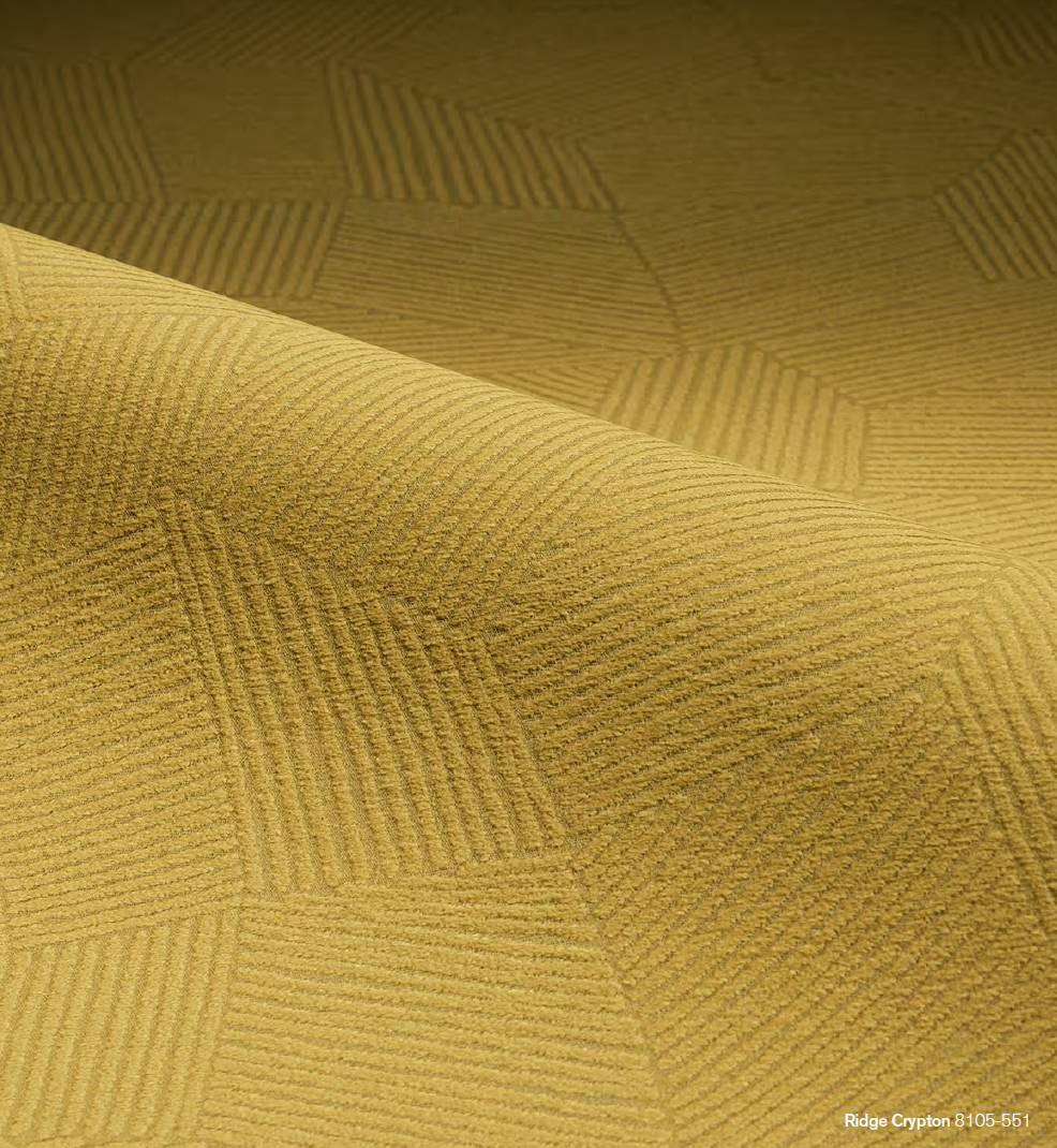 Ridge Crypton® features a plush, softly raised, irregularly drawn pattern that references the natural striation of leaf fronds, adding tactile depth and organic structure to performance-driven spaces.