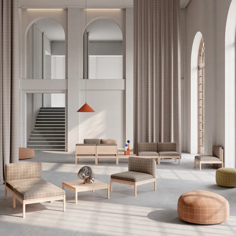 Downtown is a refined and precise pattern fabric defined by its smaller, more structured grid and subtle Scandinavian sensibility. It blends graphic discipline with understated elegance; adding texture, rhythm, and depth to interiors. Downtown is a multi-use fabric designed to bring clarity and cohesion to hospitality, commercial, and workplace spaces. Design and colours by Cenk Kivrikoglu and Gensler, serving as product design consultant.