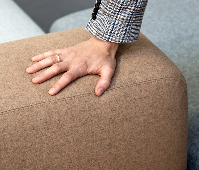 Focus is a woven felt upholstery fabric made of 100% premium quality worsted wool. Distinguished by a unique ultra-soft and satiny touch, superior strength, and a modern colour scheme, the fabric reinvents the iconic felt texture and brings it into the future.