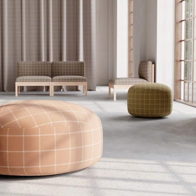 Uptown is a bold and expressive polyester fabric defined by its large, open grid structure and refined Scandinavian perspective. It´s a fabric that combines graphic clarity with natural softness – bringing depth, rhythm, and movement to interiors. Uptown is a multi-use fabric designed for versatility across hospitality, commercial, and workspace interiors. Design and colours by Cenk Kivrikoglu and Gensler, serving as product design consultant.