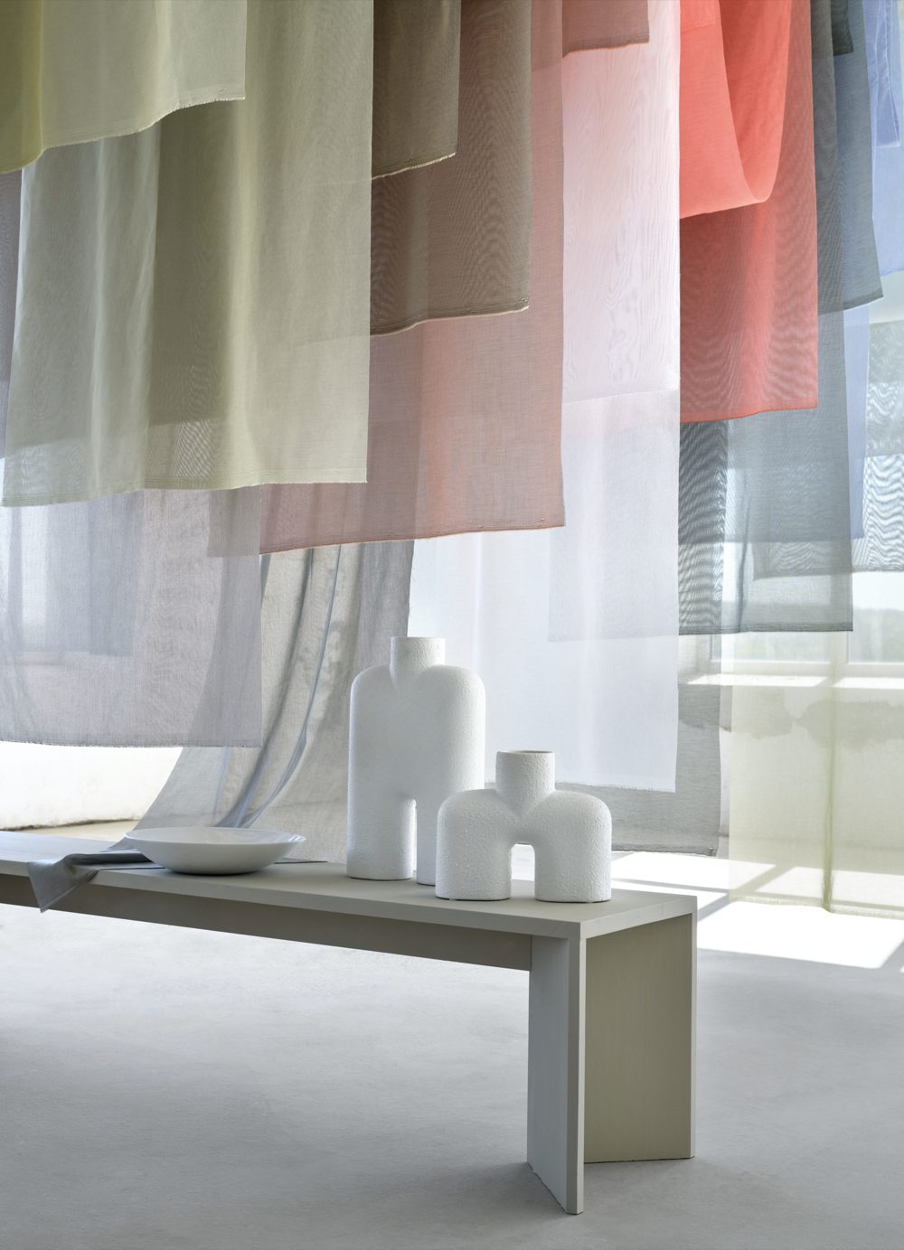 A new approach to colours which encourages innovation and imagination. A plethora of powdery tones centred around a coral red accent. Combine several shades to find new combinations. Hang it in layers and let the beautiful fabrics unite to form new blocks of colour. Use it in open spaces to create new rooms. Add Siri and Felix or keep it simple with a solitary curtain. No matter how you work and which colour you choose, Nova will direct the light beautifully.