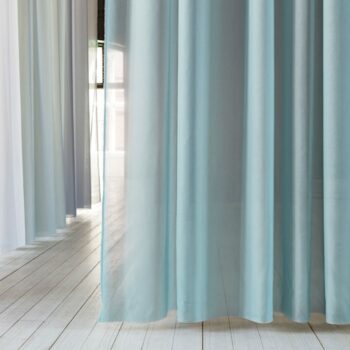 Mint is three metres wide, creating hanging opportunities that are entirely based on the composition of the room. The ethereal quality of the fabric with its beautiful drop produces a wonderful level of light penetration regardless of the season. The curtain’s range of colours is designed to be coordinated with Karat, Grain and Prime, as well as the architectural pattern in Reed printed on Mint. Mint also goes well with our various different upholstery fabric collections.