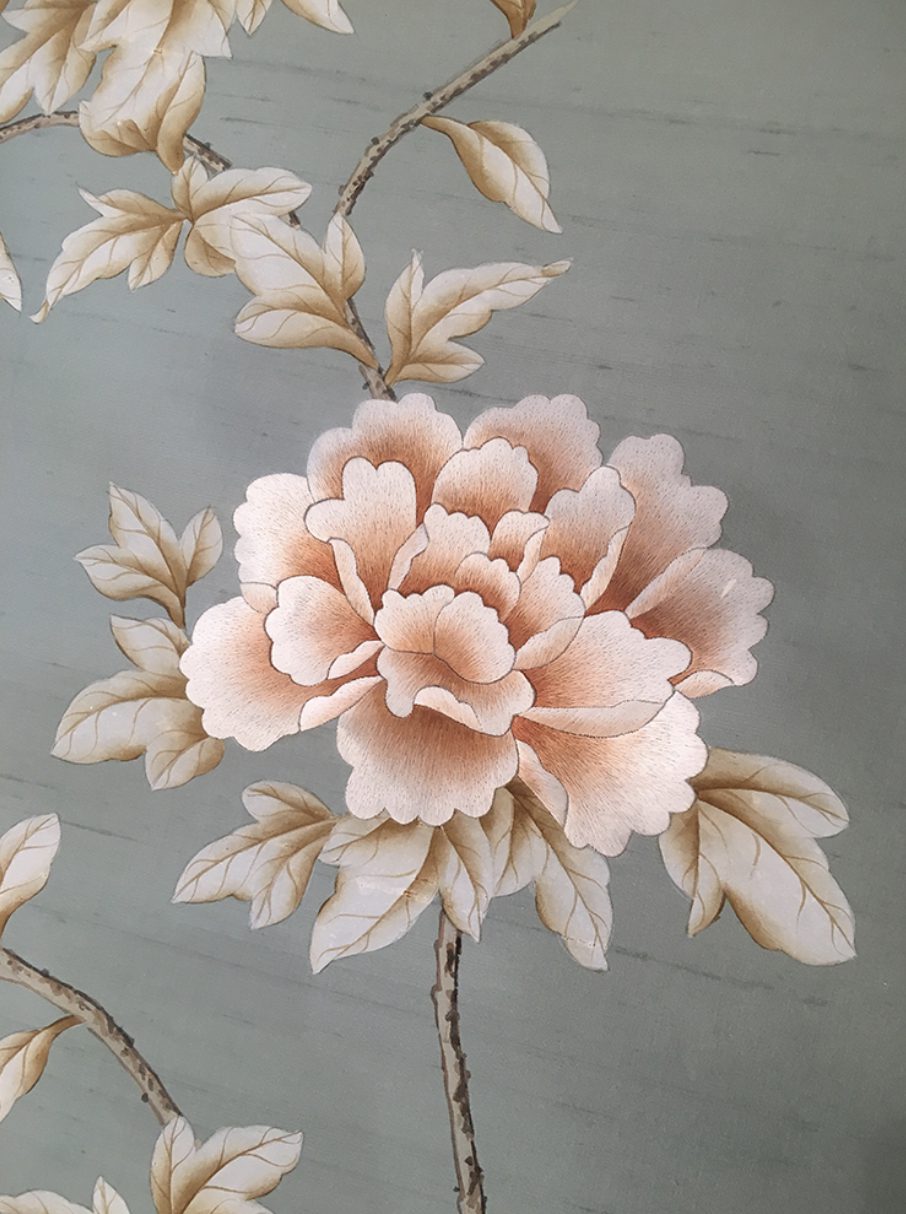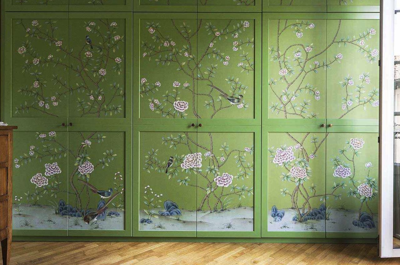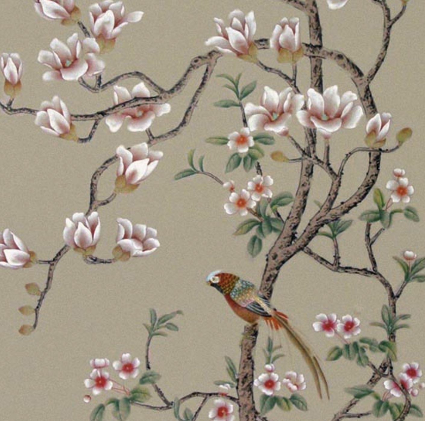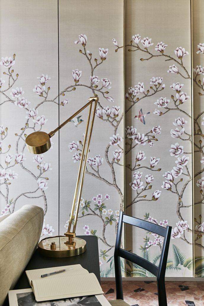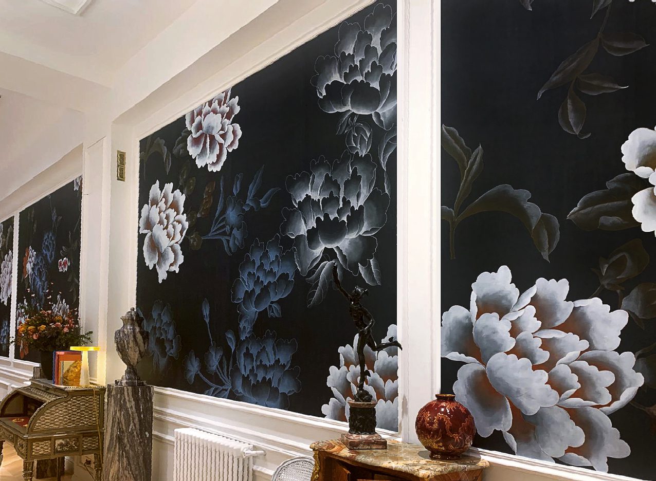 The Chinese garden enters the space of the home with its traditional imagery. Oriental themes like large flowers, plants and animals, revive the splendor of the royal courts of the imperial age, alongside the refinement of European chinoiserie. The wallcovering motifs are painted by hand using traditional techniques from the 18th century. China Classic is a wallpaper that portrays an imaginary China with a refined taste for the exotic. The standard design of each wallpaper can be adapted to the spaces to be covered; the background colors can be personalized, and the designs can be added to or rarified upon request.