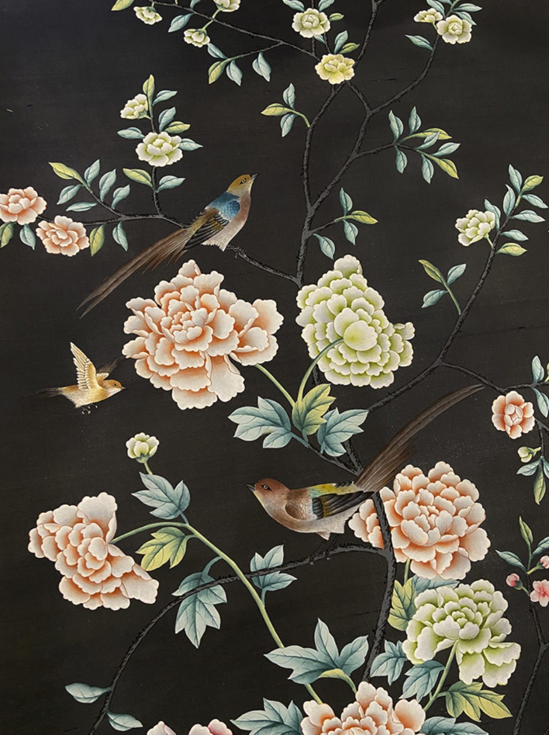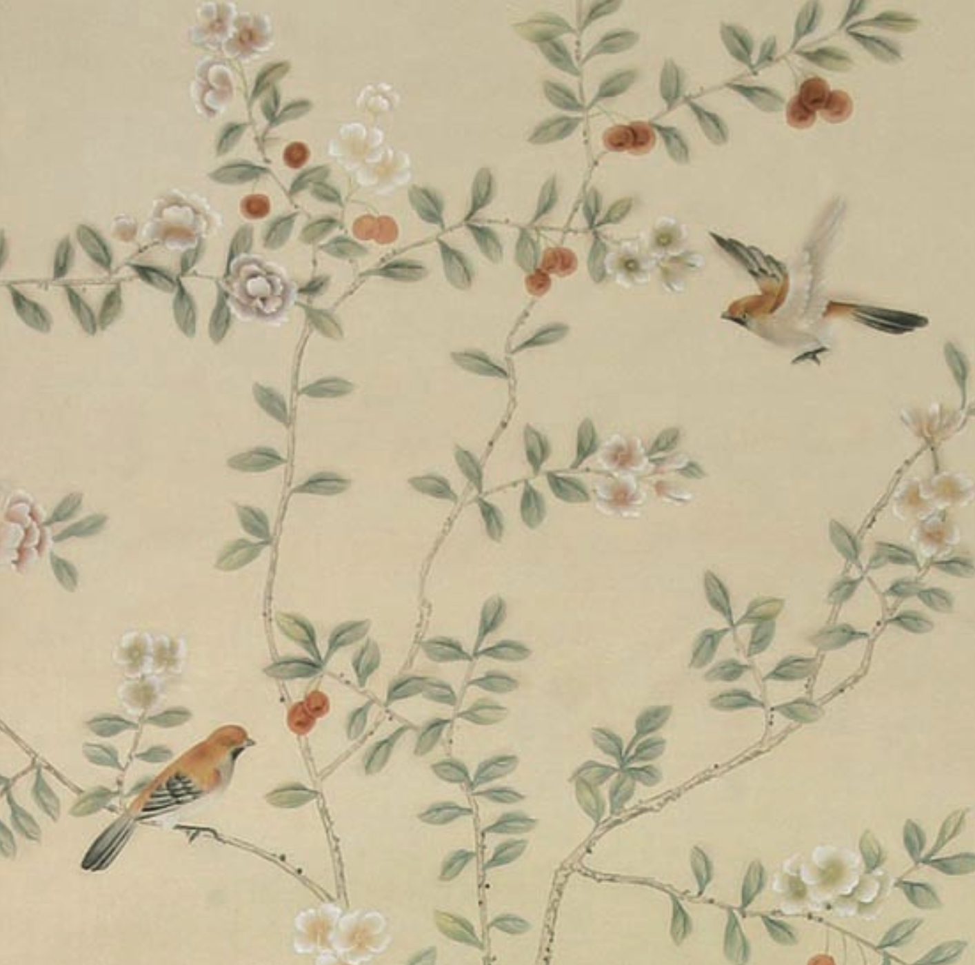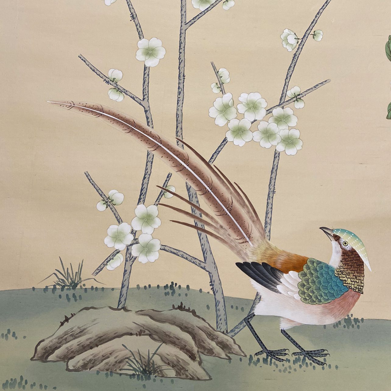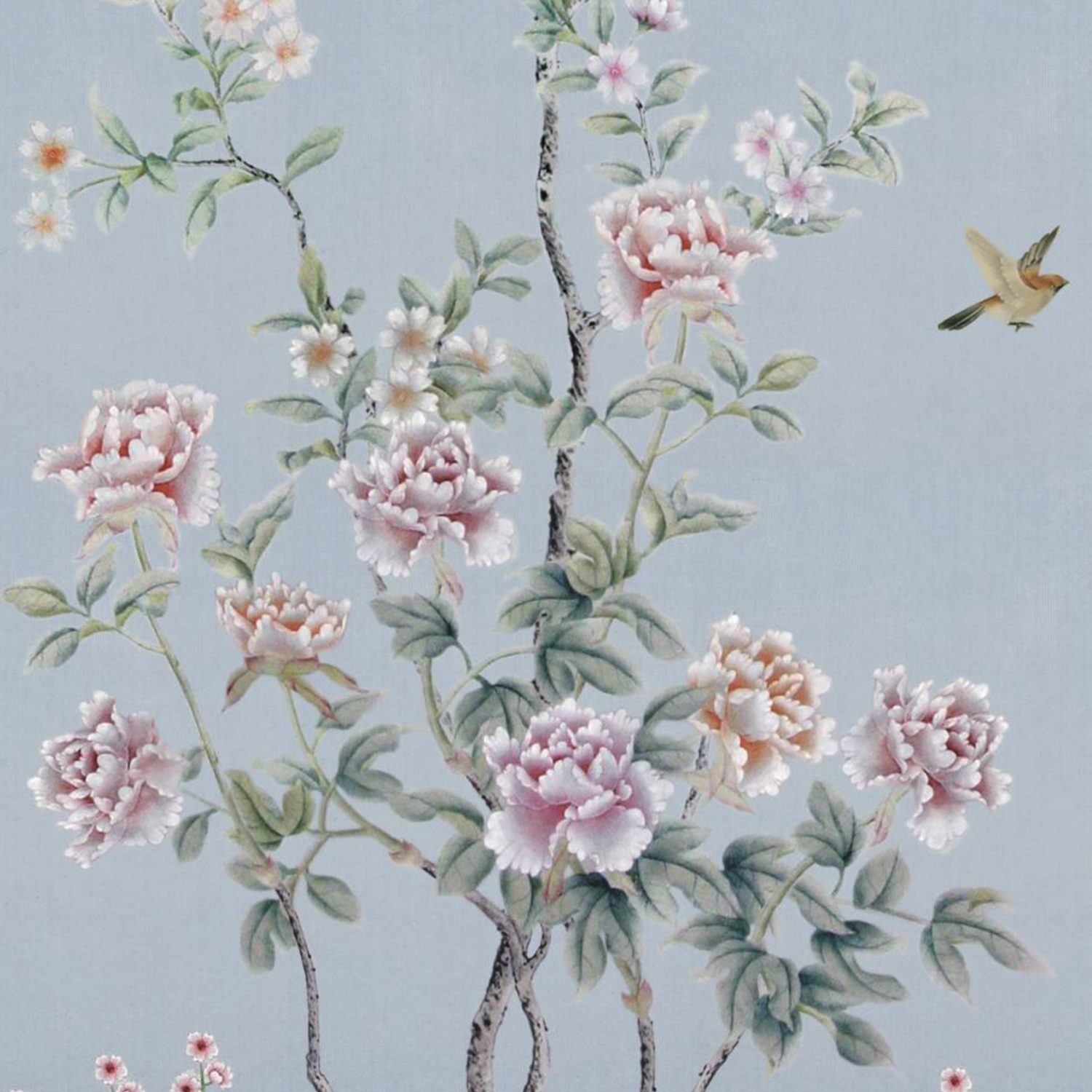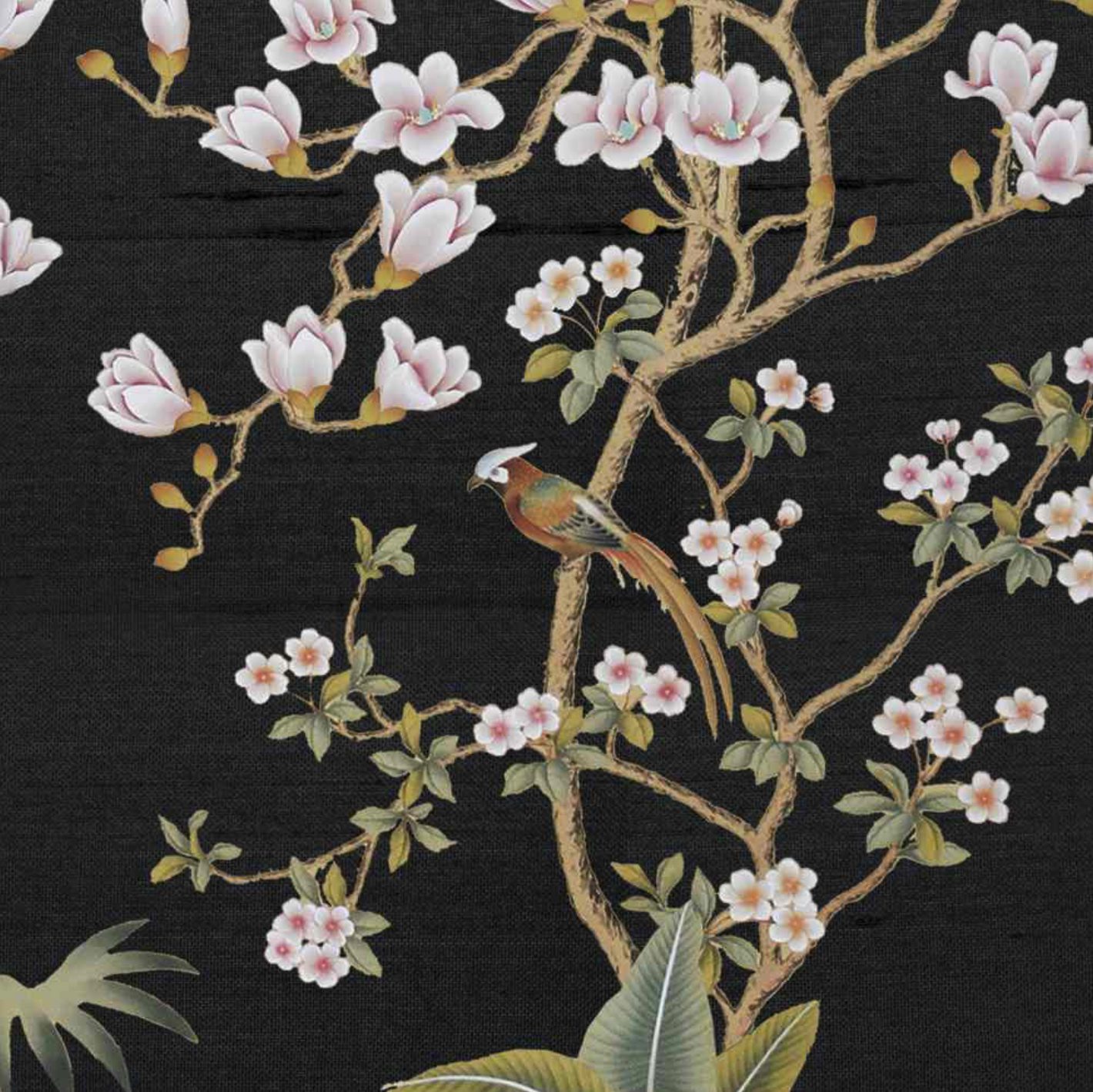 The Chinese garden enters the space of the home with its traditional imagery. Oriental themes like large flowers, plants and animals, revive the splendor of the royal courts of the imperial age, alongside the refinement of European chinoiserie. The wallcovering motifs are painted by hand using traditional techniques from the 18th century. China Classic is a wallpaper that portrays an imaginary China with a refined taste for the exotic. The standard design of each wallpaper can be adapted to the spaces to be covered; the background colors can be personalized, and the designs can be added to or rarified upon request.