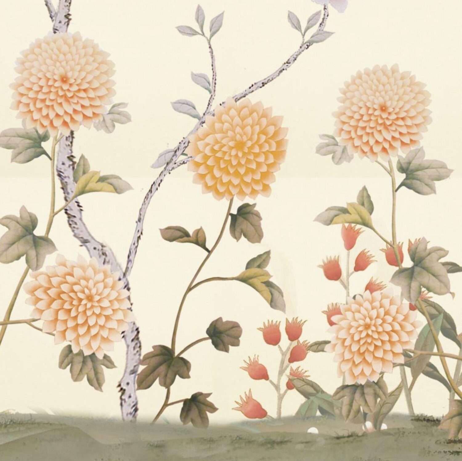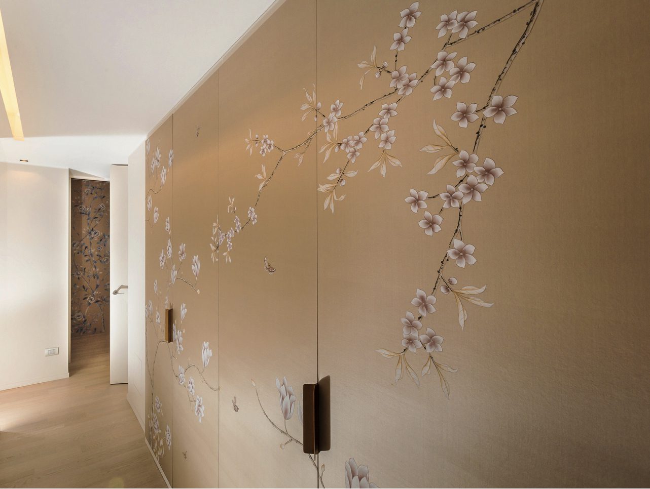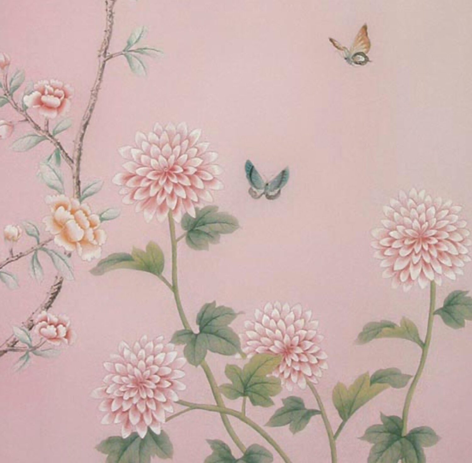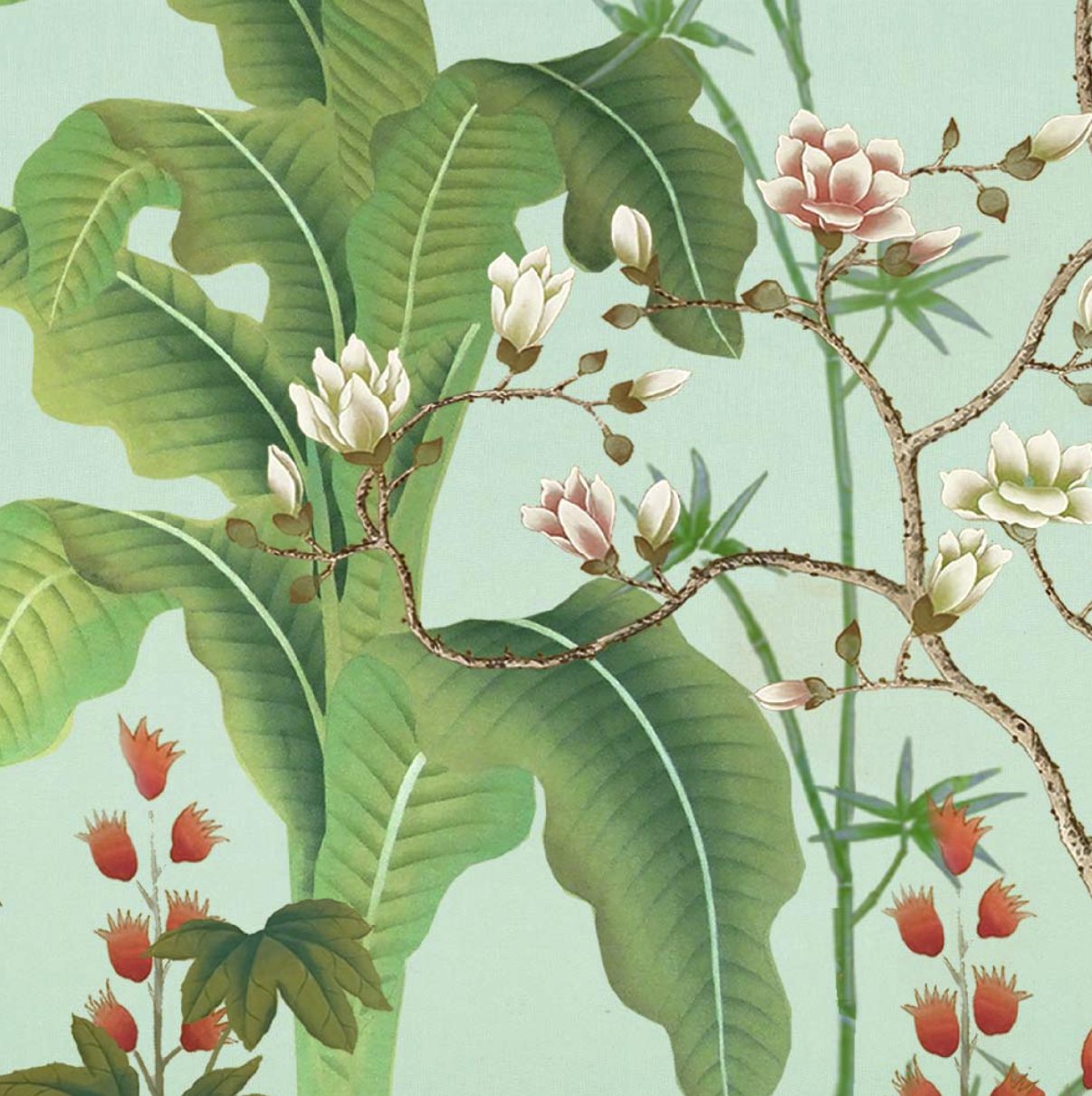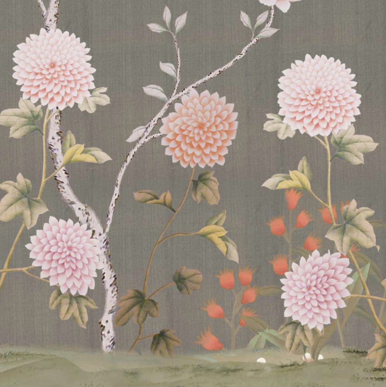 The Chinese garden enters the space of the home with its traditional imagery. Oriental themes like large flowers, plants and animals, revive the splendor of the royal courts of the imperial age, alongside the refinement of European chinoiserie. The wallcovering motifs are painted by hand using traditional techniques from the 18th century. China Classic is a wallpaper that portrays an imaginary China with a refined taste for the exotic. The standard design of each wallpaper can be adapted to the spaces to be covered; the background colors can be personalized, and the designs can be added to or rarified upon request.