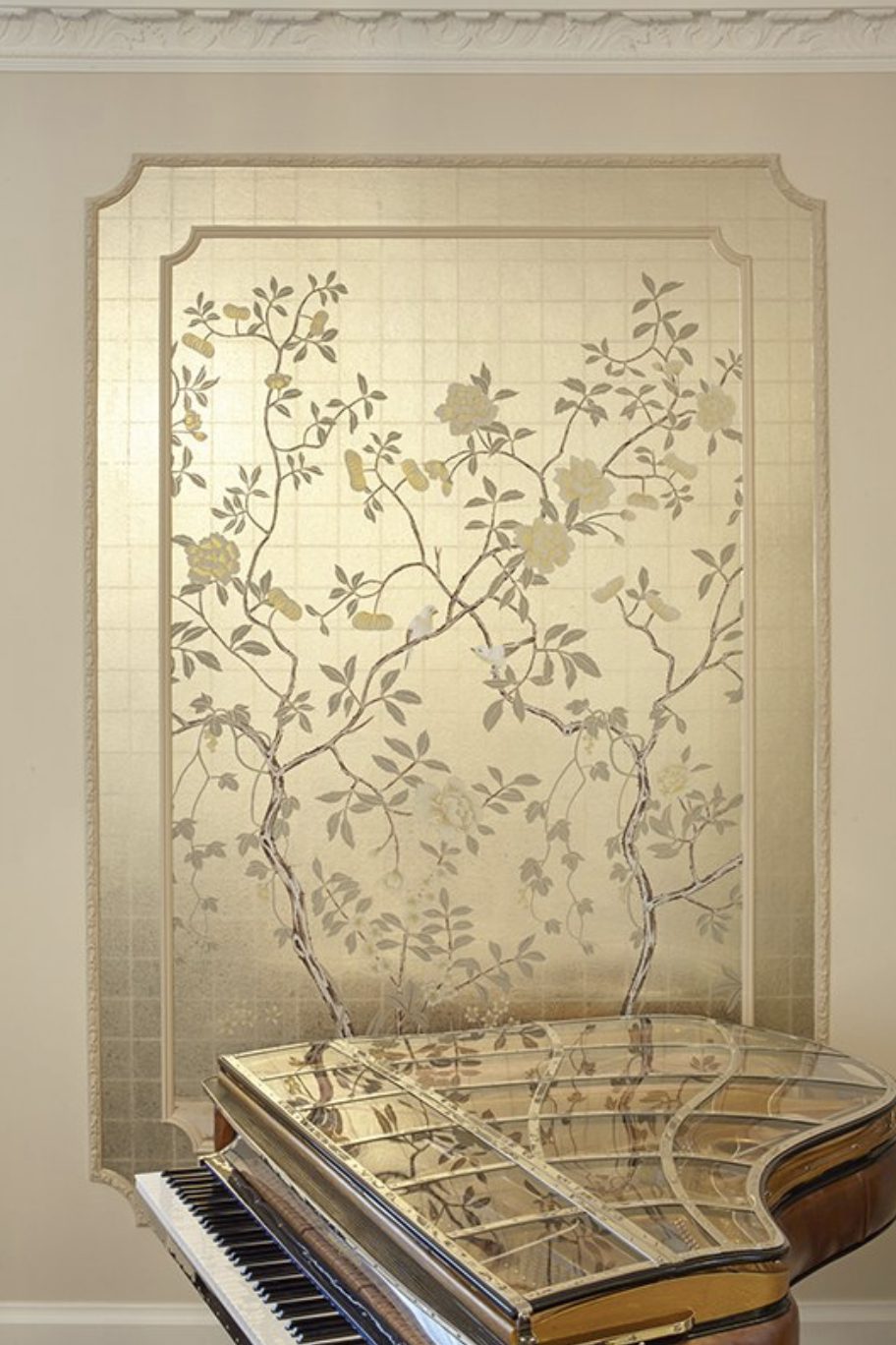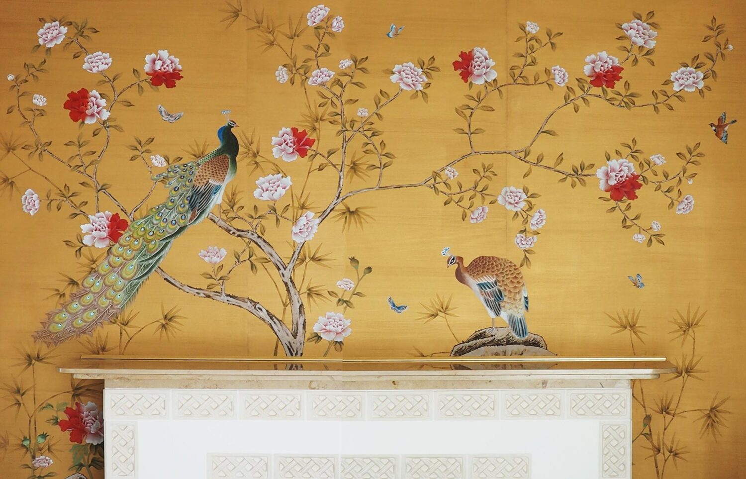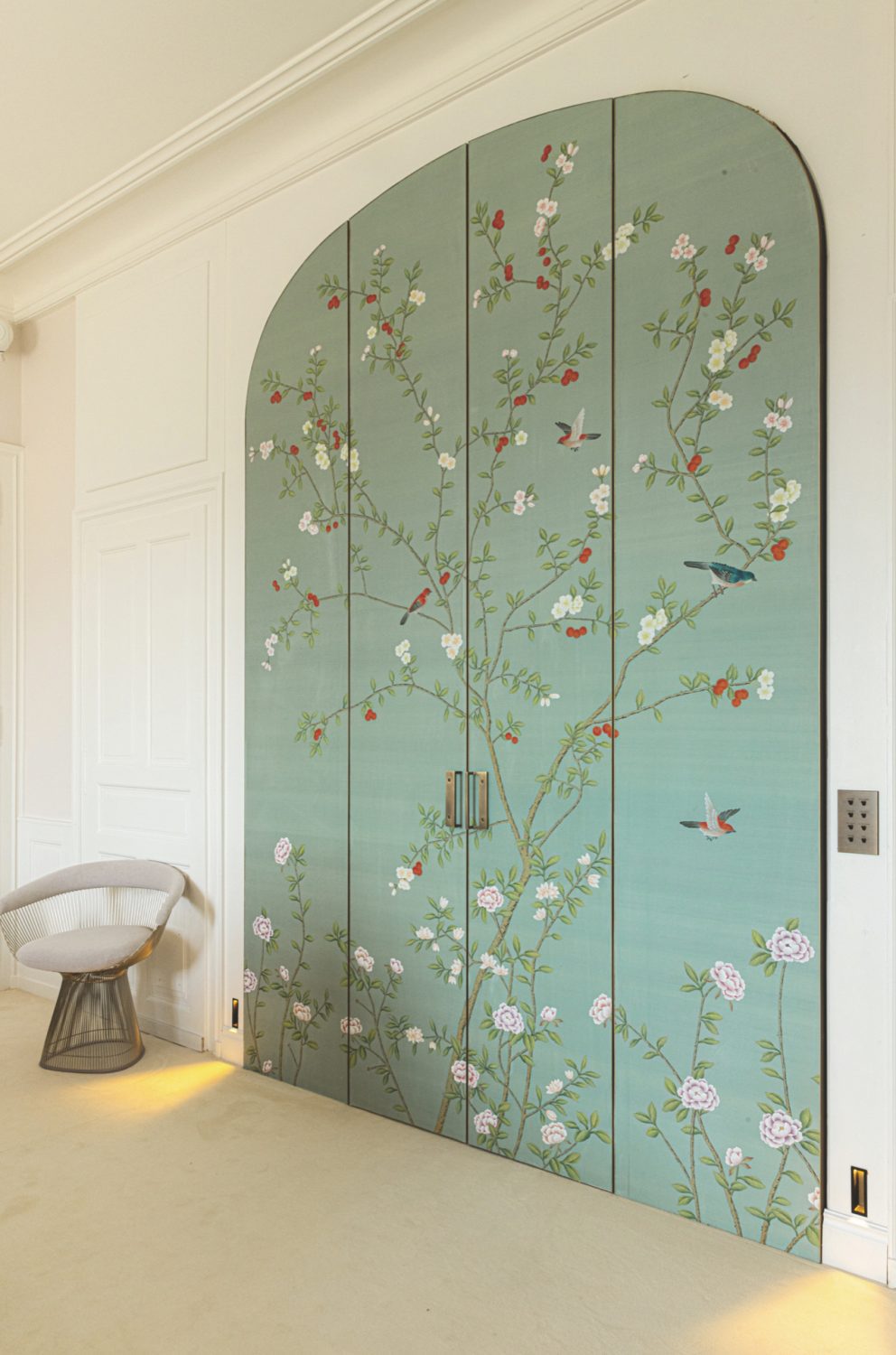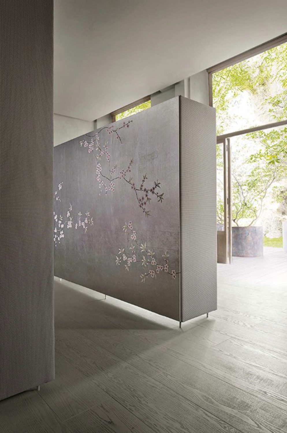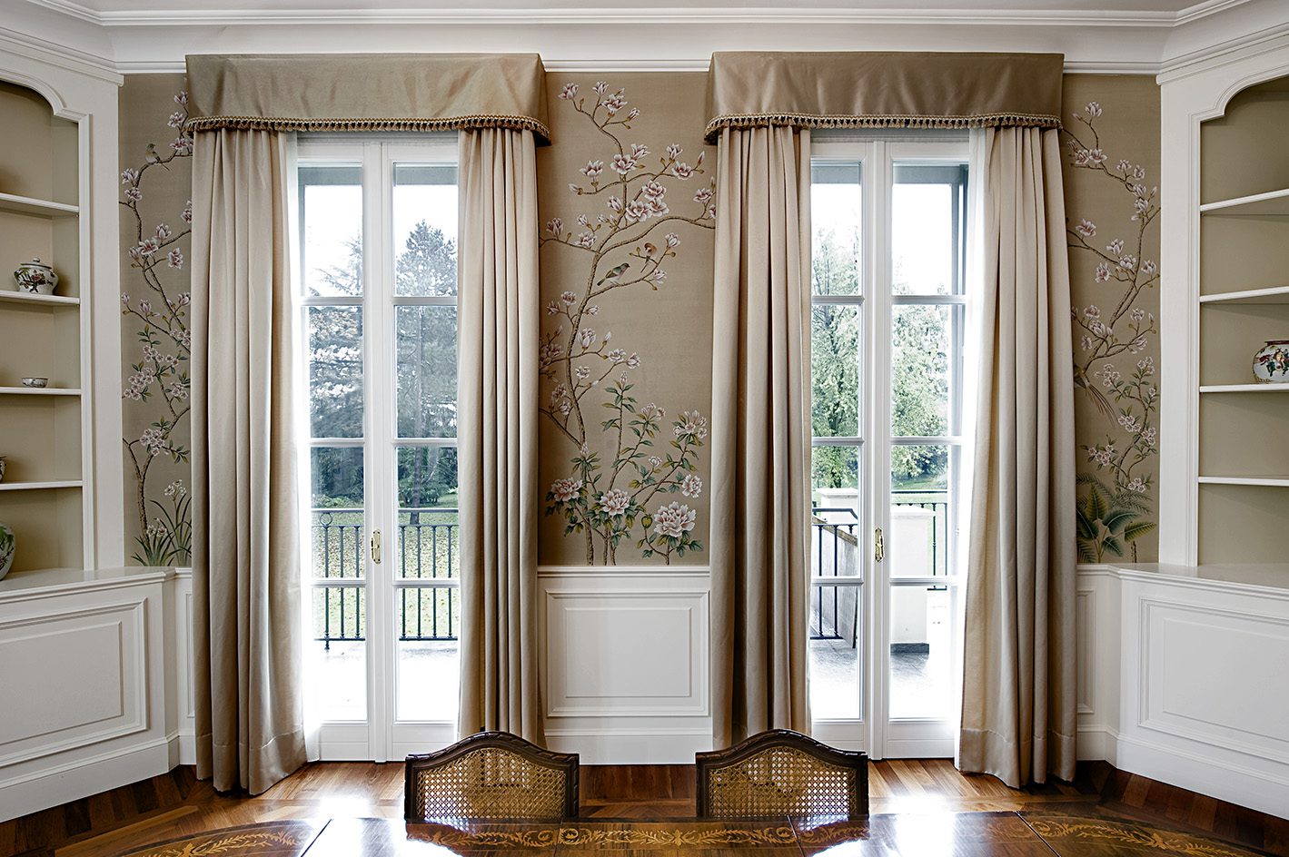 The Chinese garden enters the space of the home with its traditional imagery. Oriental themes like large flowers, plants and animals, revive the splendor of the royal courts of the imperial age, alongside the refinement of European chinoiserie. The wallcovering motifs are painted by hand using traditional techniques from the 18th century. China Classic is a wallpaper that portrays an imaginary China with a refined taste for the exotic. The standard design of each wallpaper can be adapted to the spaces to be covered; the background colors can be personalized, and the designs can be added to or rarified upon request.