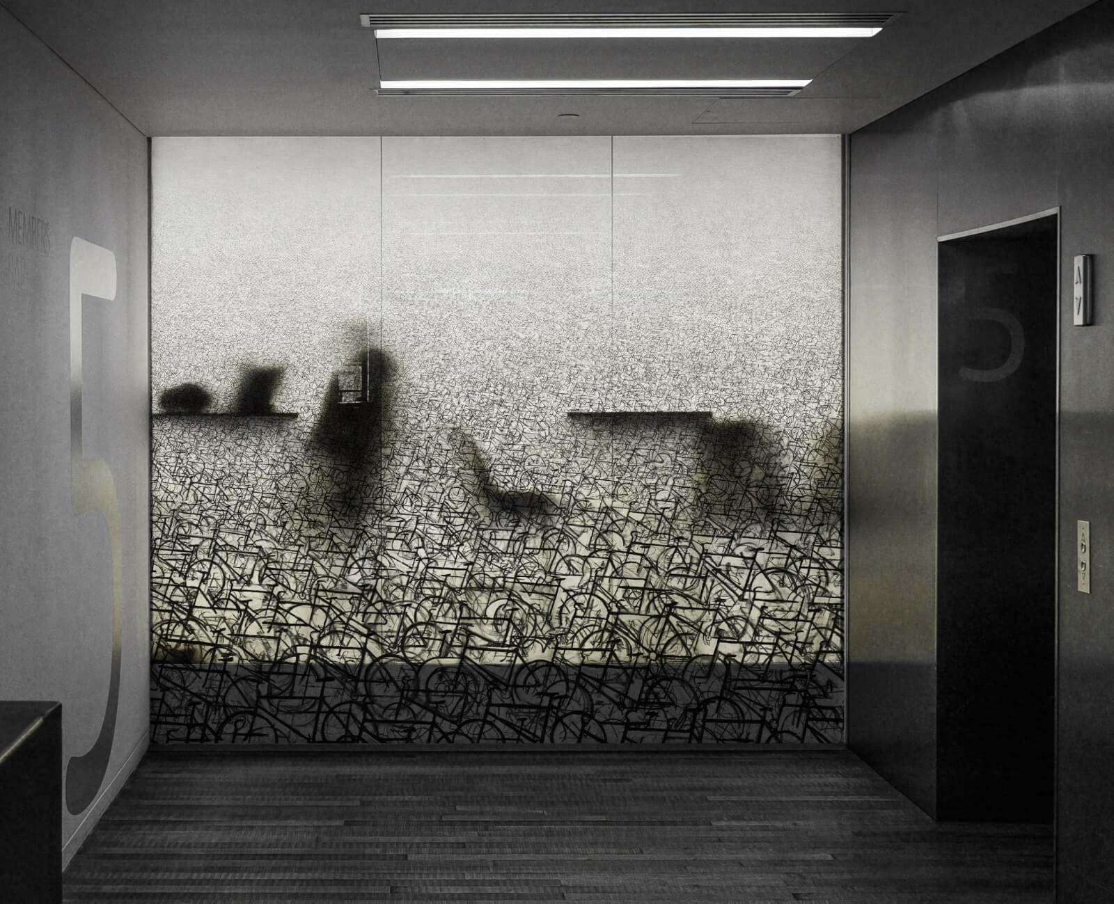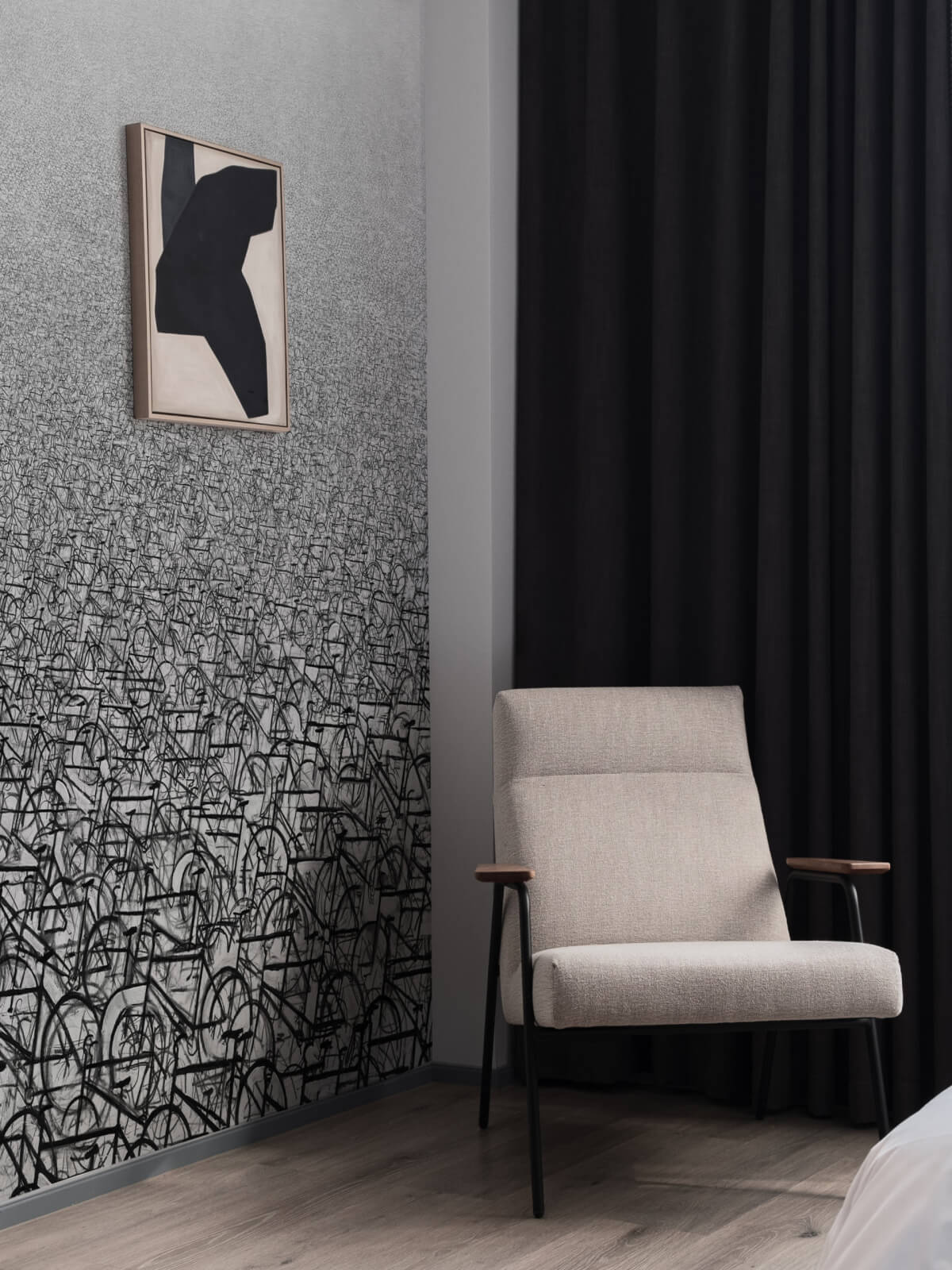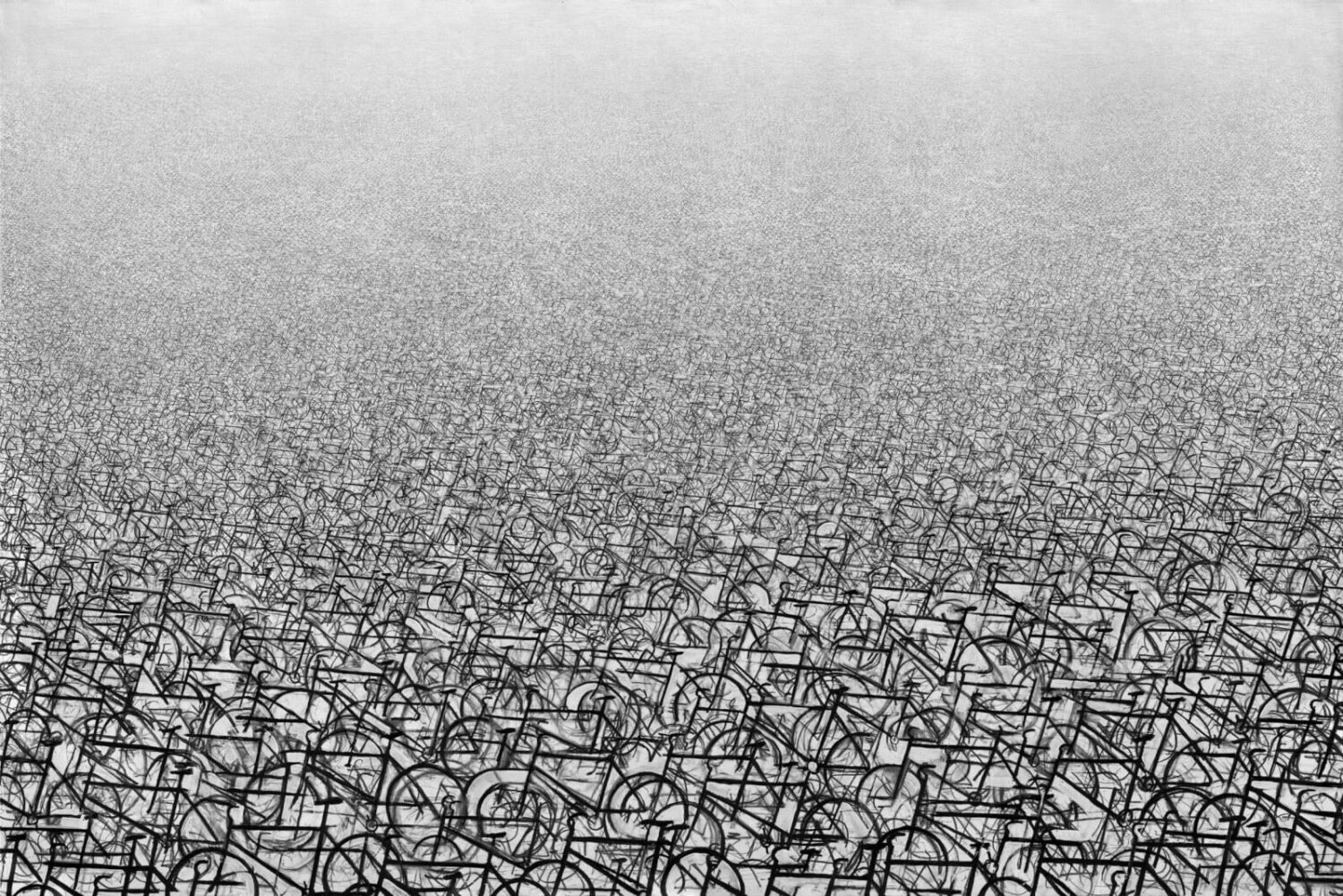 A sea of bicycles! Hand-drawn by artist Stephen Walter and faithfully reproduced as a wallcovering. Can be printed onto any of our base materials including textures, colours, metallics and window films.