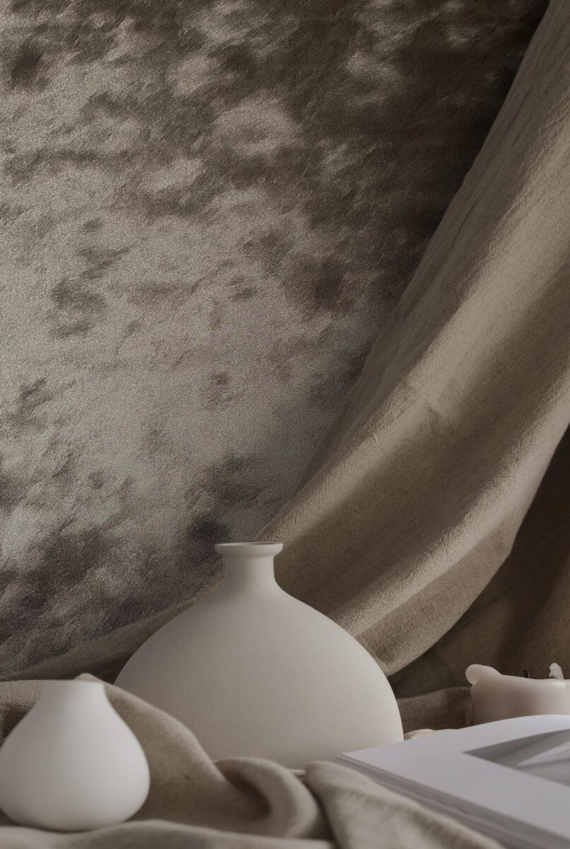 Peloso is a luxurious cowhide/leather texture. The subtle yet intricate nuances of the emboss create a wonderful movement that replicates the organic leather patterns. The design comes to life when the light catches the metallic and mica pigments. The warm, sumptuous and sophisticated colour palette of jewel tones, utilises the micas and metallics.