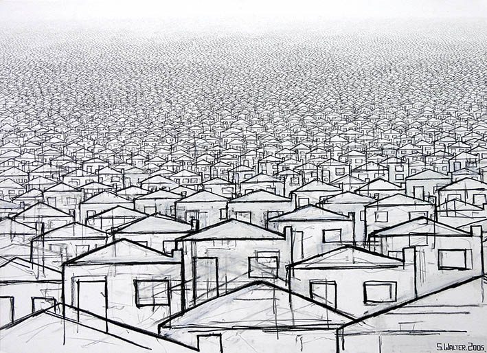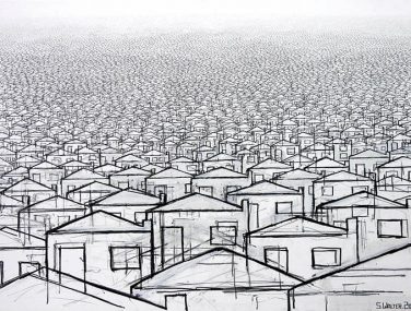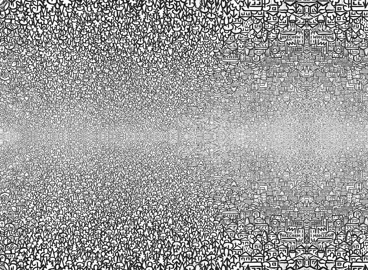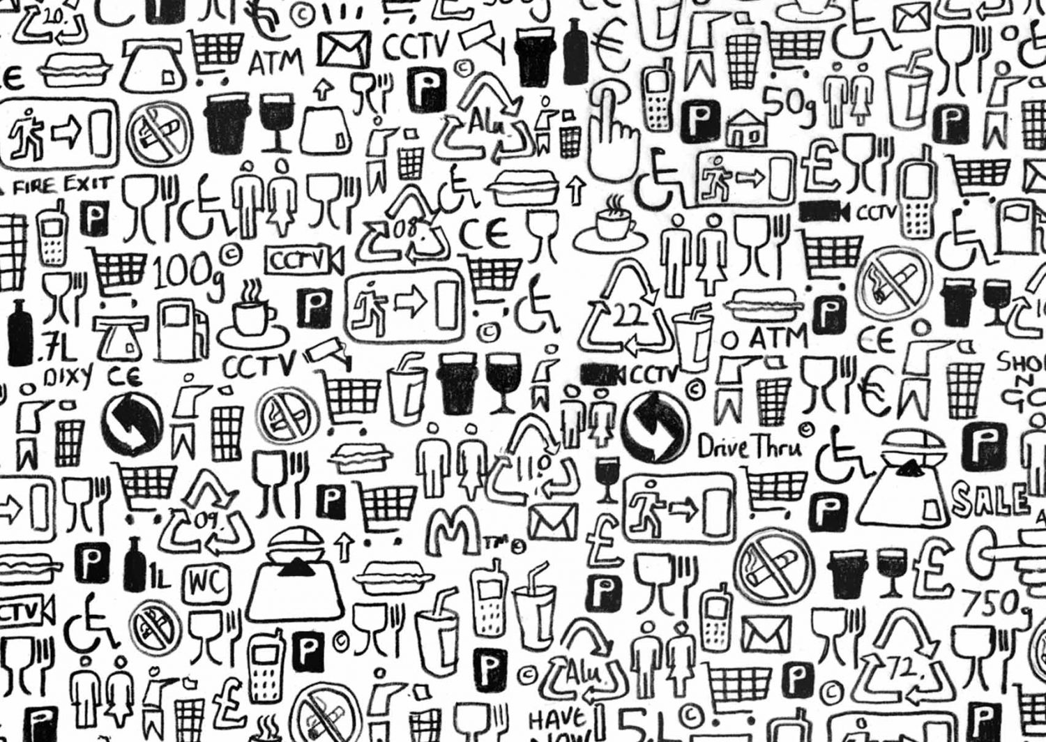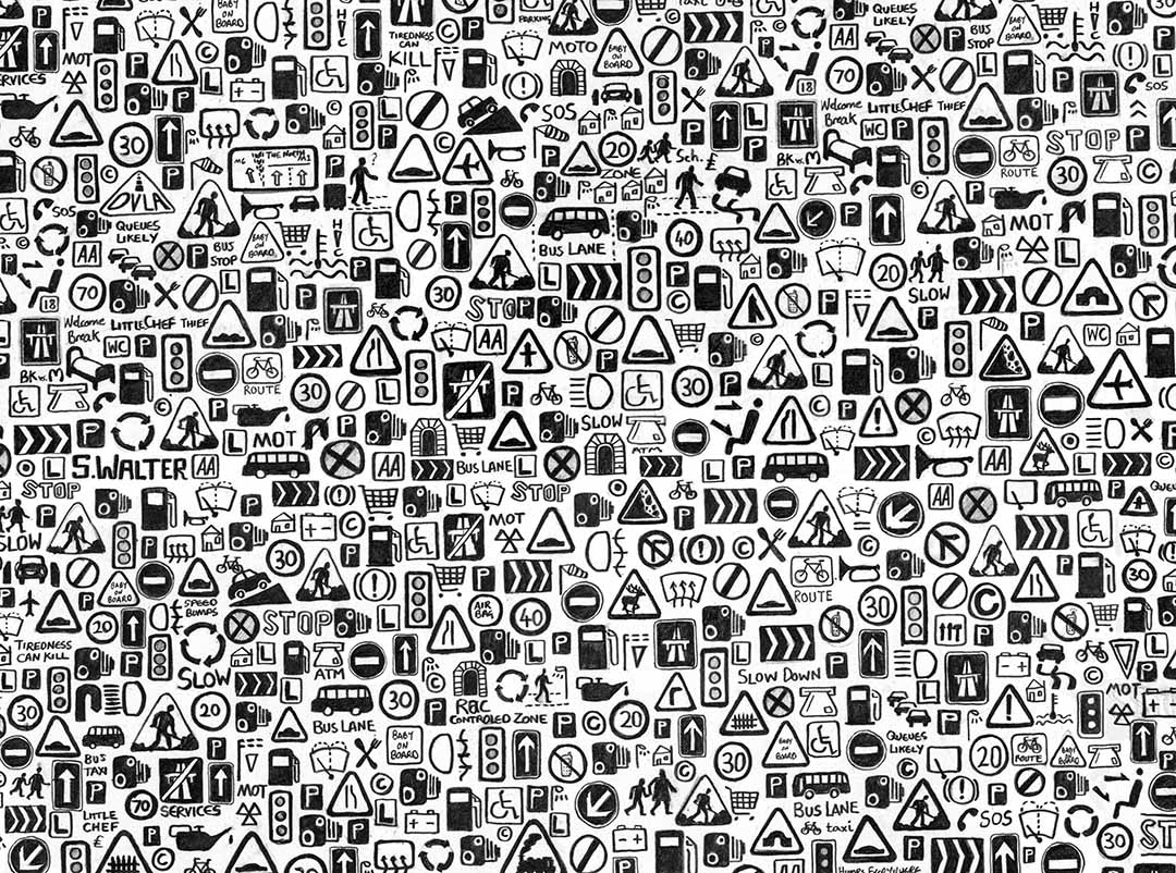 Stephen’s drawings are a tangle of signs, words and images that draw the viewer into the artist’s intricate worlds. A graduate of Manchester Metropolitan University and the Royal College of art, he is best-known for his series of hand-drawn maps, done in enormous detail and layered with both visual and textual information. Each work is an intricate world in itself; a tangle of words and symbols that make up a complex of hidden meanings and wider contradictions. Through drawing, photography and printmaking, his artworks explore the meaning of objects, the glory of maps, our place in the world, and the potential legacy that we bequeath to future generations.