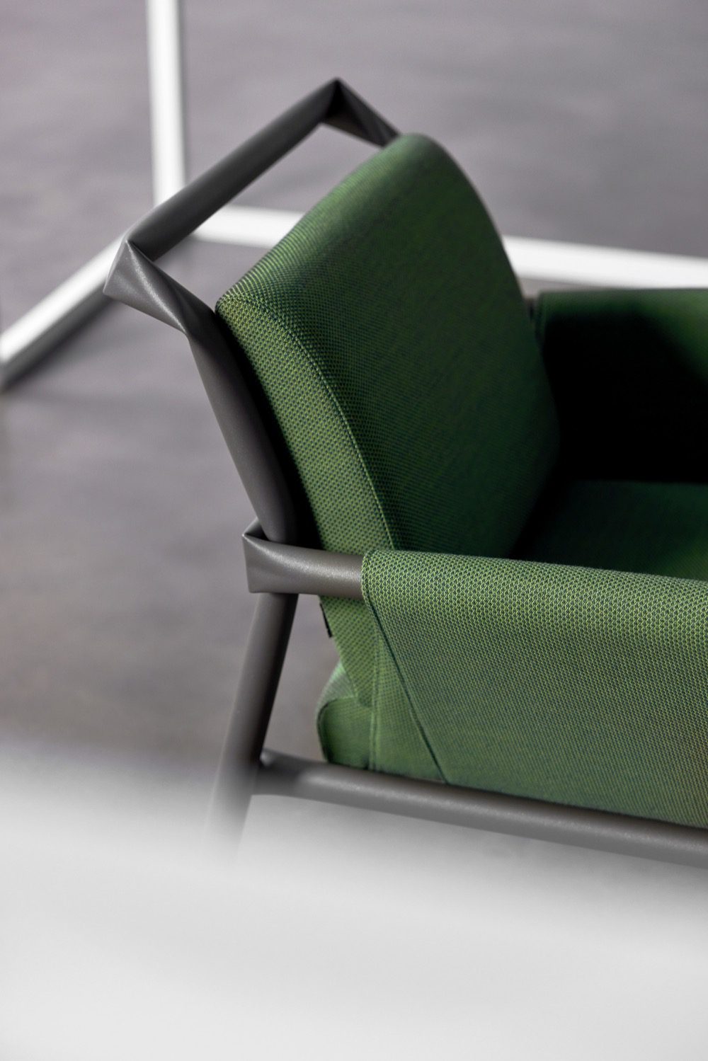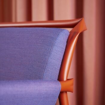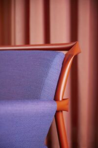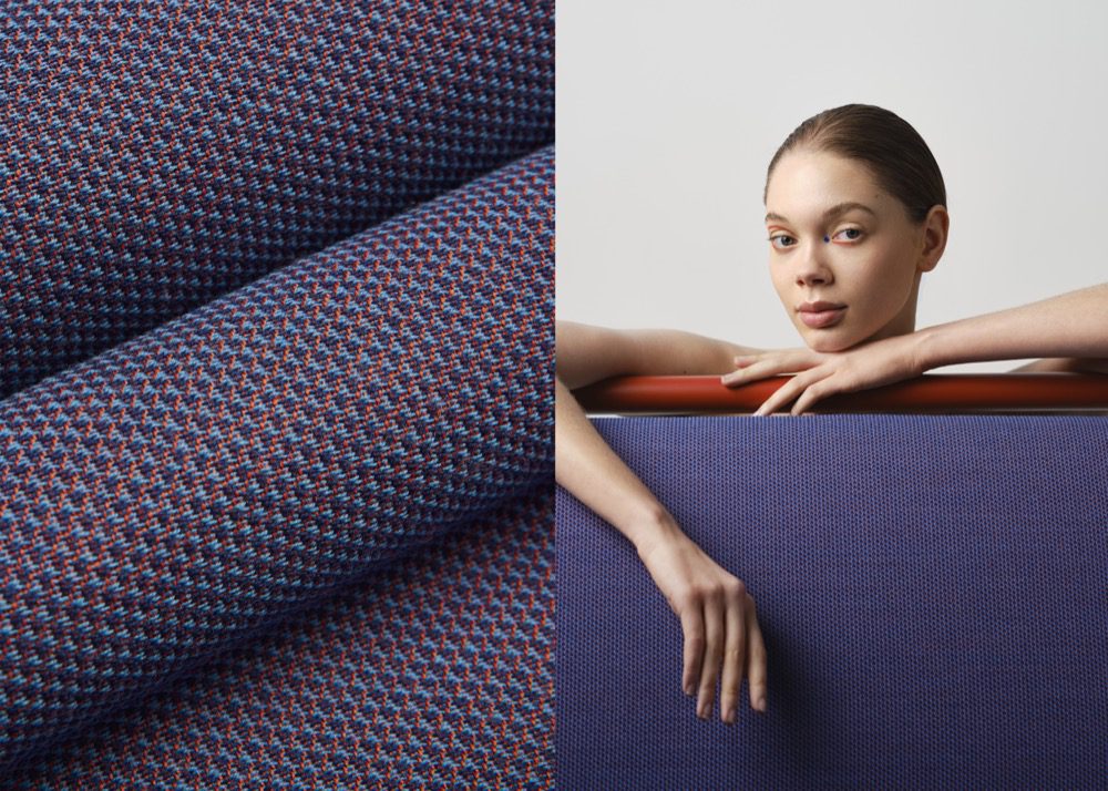 Node is an upholstery fabric with a strong base and visual values that range from the classically subdued to the modern and sporty. The classic wool feeling contributes to its softness, while the weaving technique lends it a stable foundation. Strong colours emphasize the kaleidoscopic structure of uninterrupted diagonal lines, stretching and bending to give an illusion of depth. The visually distinct ‘nodes’ in the pattern can be viewed from any direction as they create natural junction points where shadows and reflections are free to find each other and their purpose.