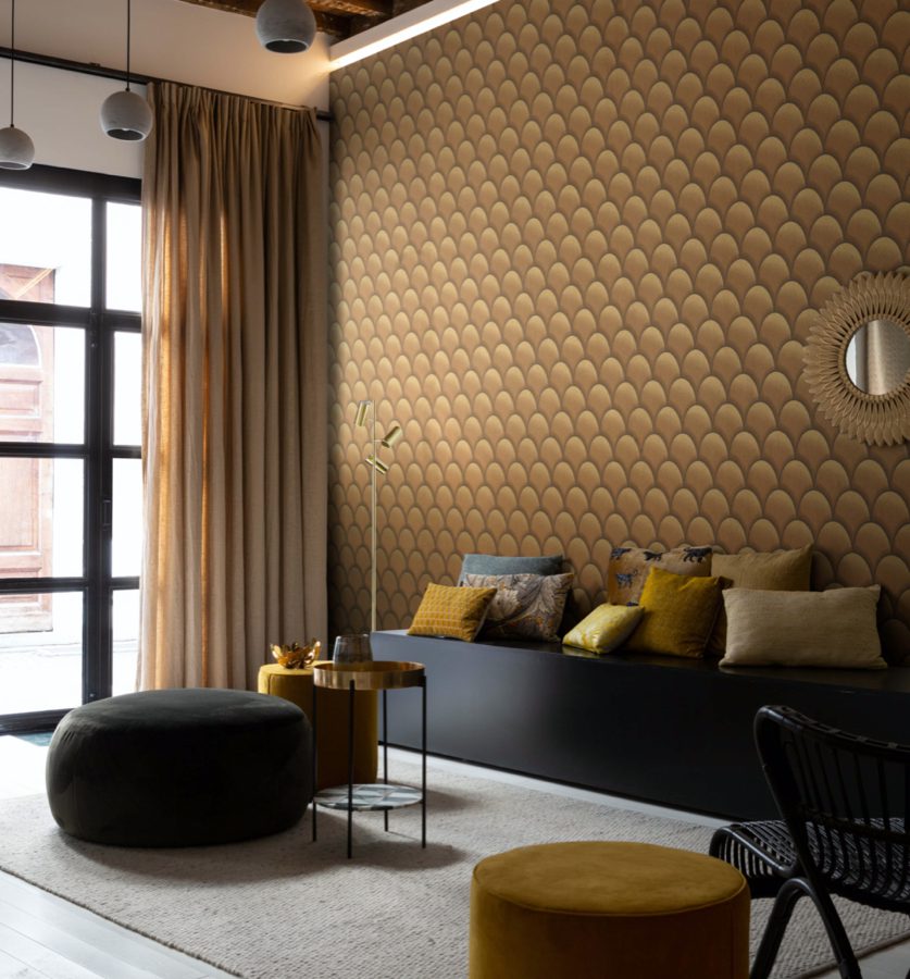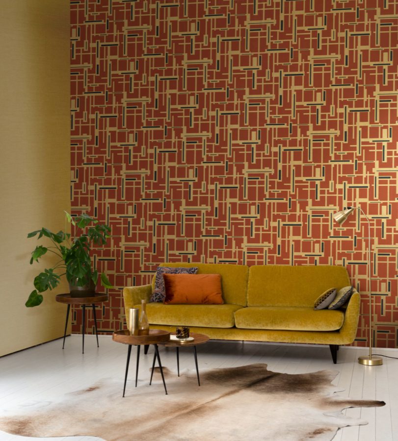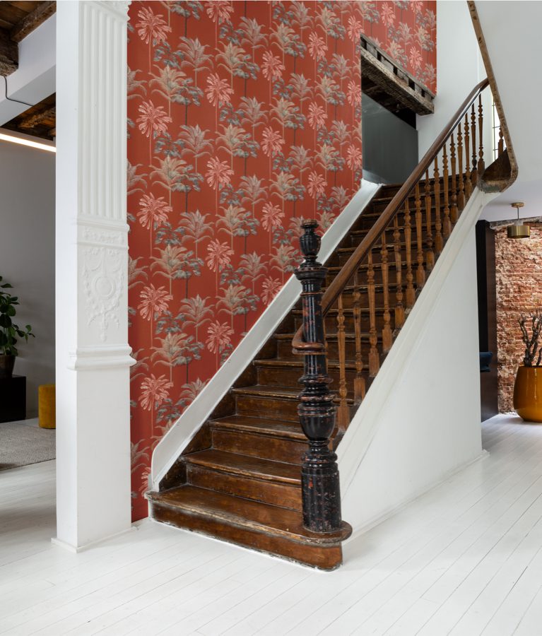 The collection includes 41 non-woven wallpapers and 8 digital designs with a coloristic focus in: Saffron yellow, coral red, petrol, sage green, warm grey, stonewashed indigo, sand, smoke blue, slate grey and emerald green.