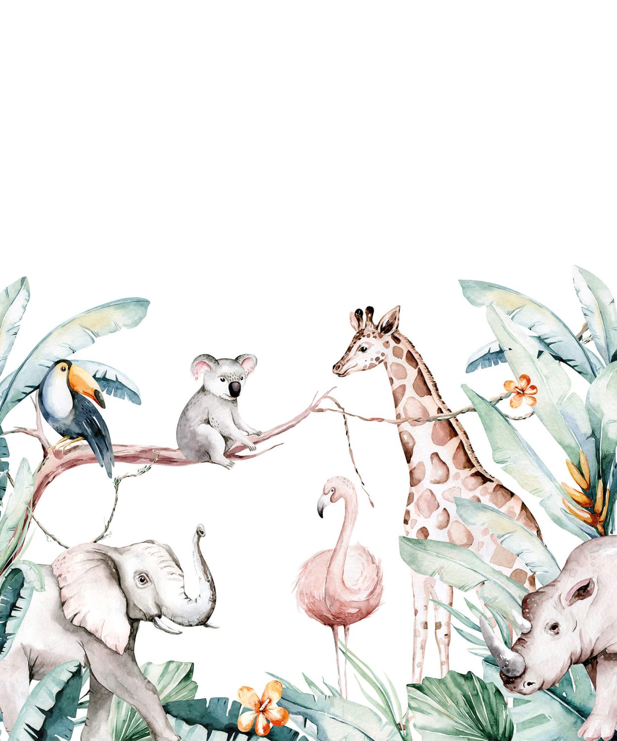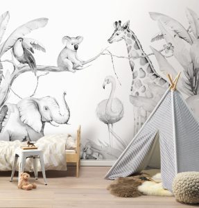 Children, there’s something going on here! No wonder, because the new Bambino collection has thought of everything to make the little ones and the littlest ones feel at home. For example, dabs, stripes or small rainbows in bright, delicate water colours. This creates a relaxed atmosphere during the day and even allows the bravest night owl to relax in the evening. But it can get a little wild. At least when elephants, lions or zebras stop by the children’s room. And they not only feel good between the filigree palm fronds, but also like to surround themselves with large flowers and small flowers in pastel pink, pale blue or light grey. A subtle colour composition that still pleases after a few years – and may gladly grow with you.