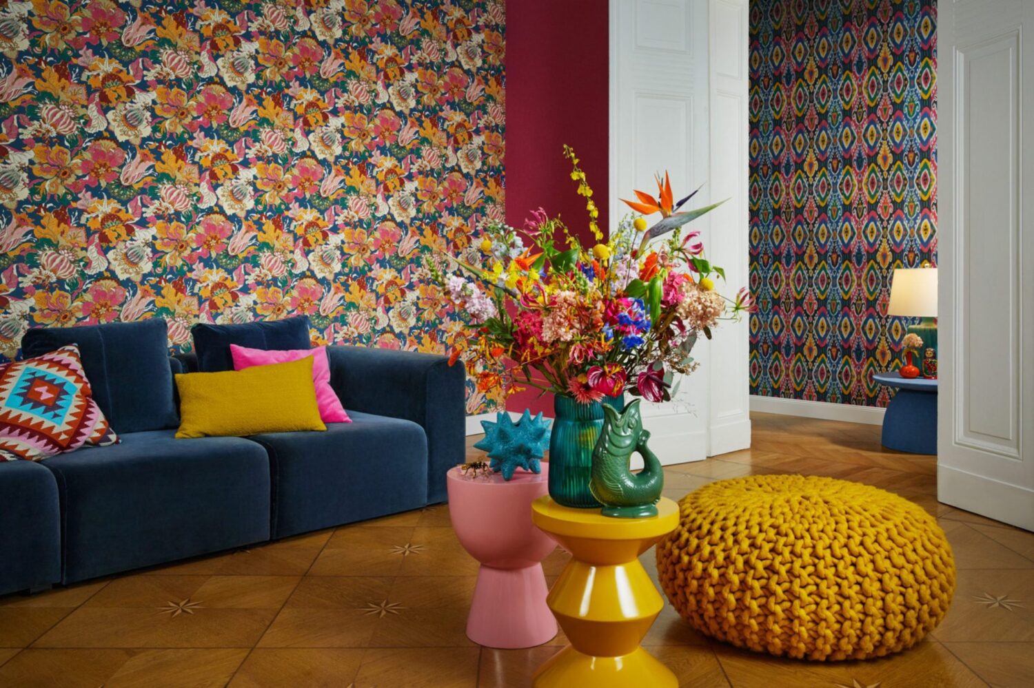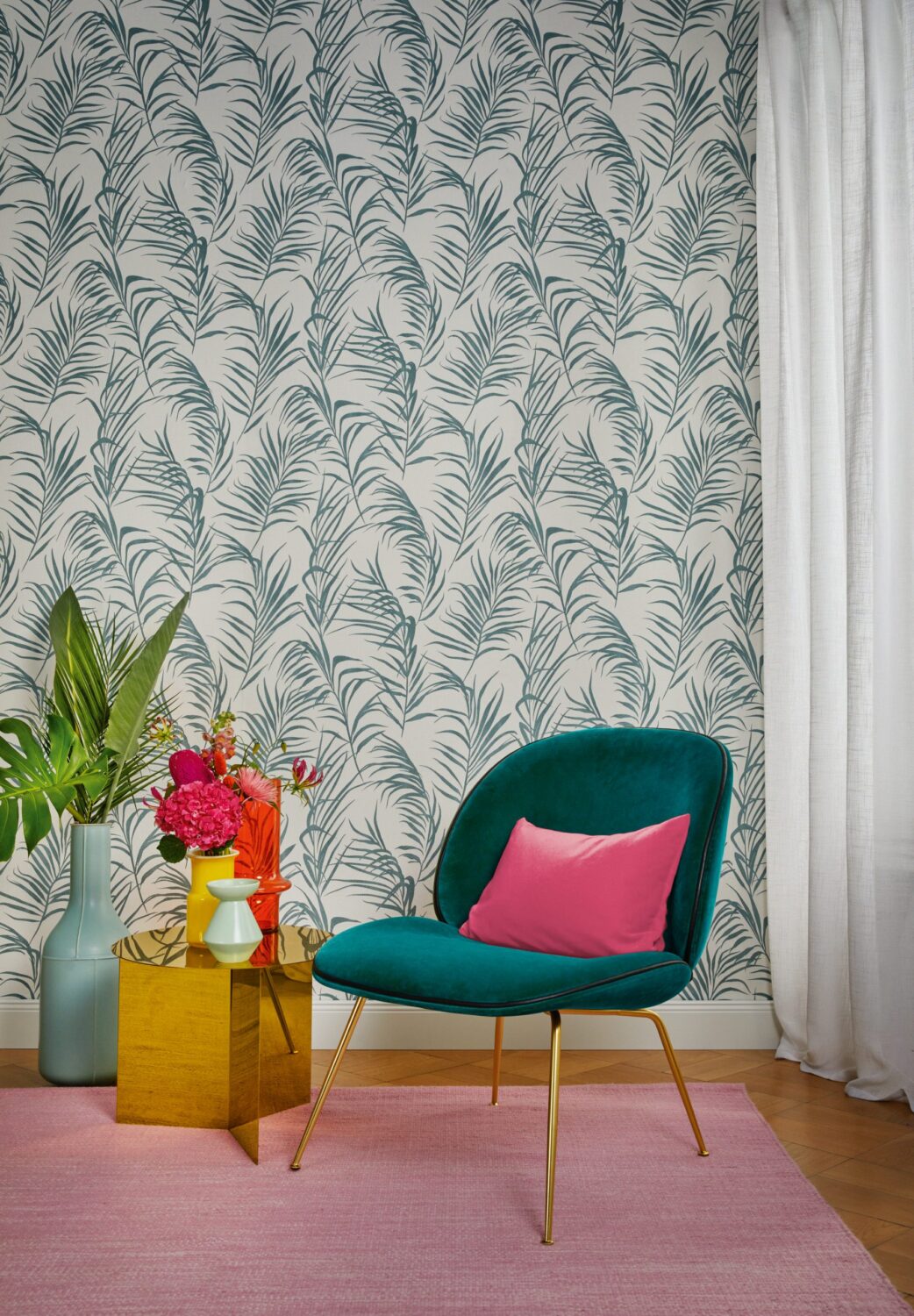 There are days when Barbara Schöneberger could clap everything on the wall –at least everything that can be found in her new BARBARA Home Collection. And above all, there are 40 new wallpaper designs that can easily carry anything: for example, exotic plants and lush leaf bouquets that are already proliferating now in her living room. Or a noble Japanese motif, in which Barbara was inspired by a silk kimono from the Rijksmuseum. Fine silver and gold accents bring splendour and glamour into the home, with pink, petrol, curry yellow and khaki bringing exuberant zest for life ... Oh yes, an antique carpet from Uzbekistan was also the inspiration for one of her wallpaper designs – Barbara would like to go up the walls. With happiness.