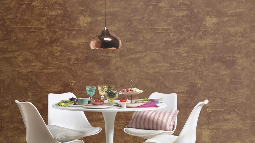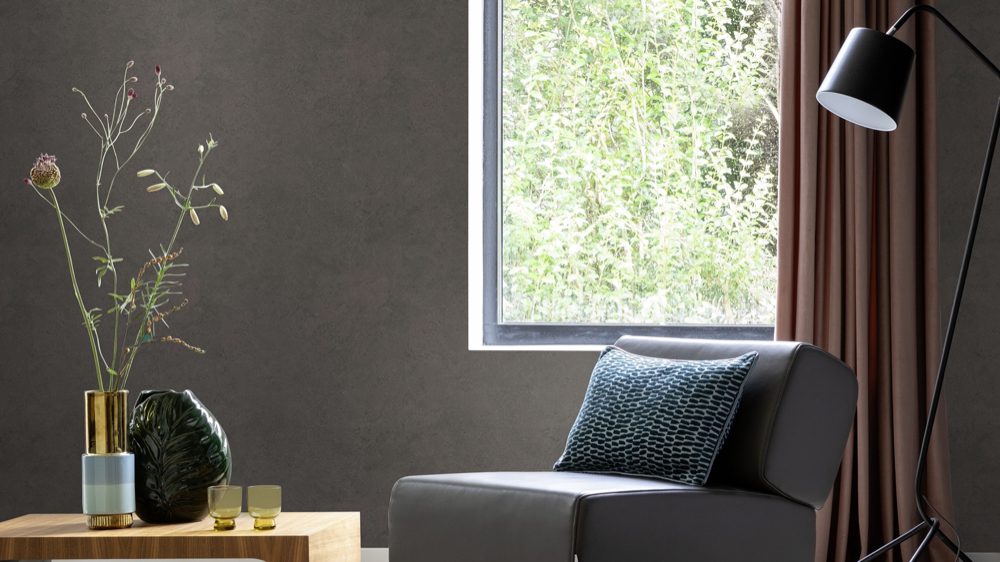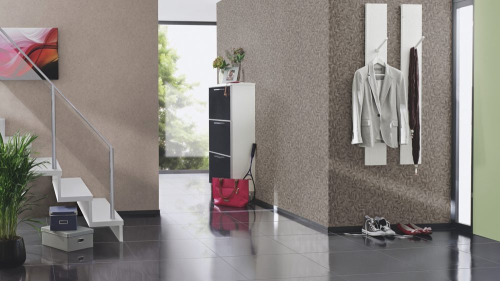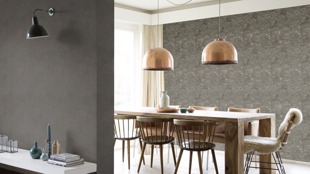 The large selection of non-woven wallpapers and murals is presented in muted, earthy beige and brown tones, rusty red nuances, muted green as well as in the predominant colours white, grey, anthracite and black. However, gold and silver with a great glossy effect are also available for all those who do not want to completely forego glamour despite the desired industrial charm.