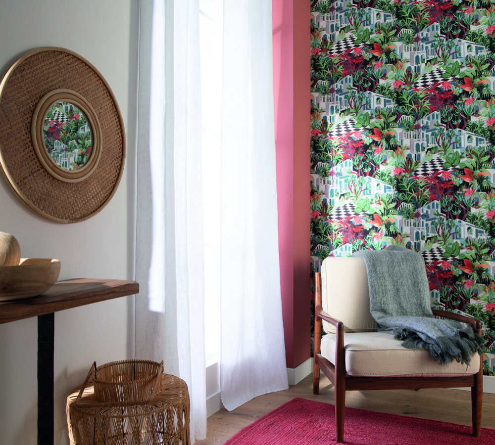 Summer vibes and good vibes – that’s what the new 'Tropical House' collection promises. Exotic plants, sophisticated graphics and Southern architecture are perfectly showcased with a successful combination of impressive and soft colours. The tropical patio with numerous exotic plants, the masterful mix of extraordinary shapes, the artful tangled leaves or the clear lines with clever interplay of colours and gloss effects – colourful and carefree, each individual pattern wallpaper effortlessly draws attention to itself. With colourful banana leaves, imaginative art prints, dreamy oases and inviting primeval forest towns, digital prints also bring life to the wall.
