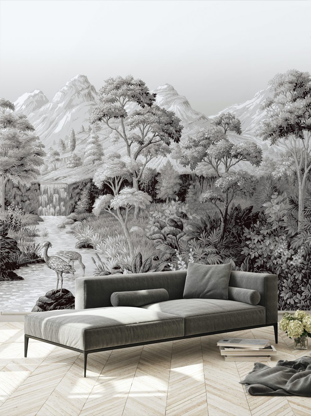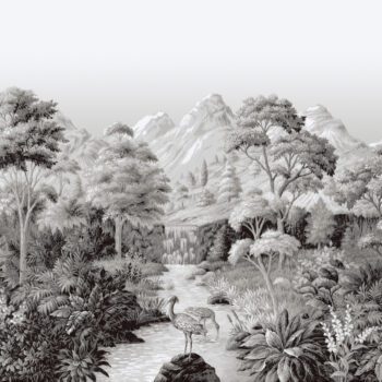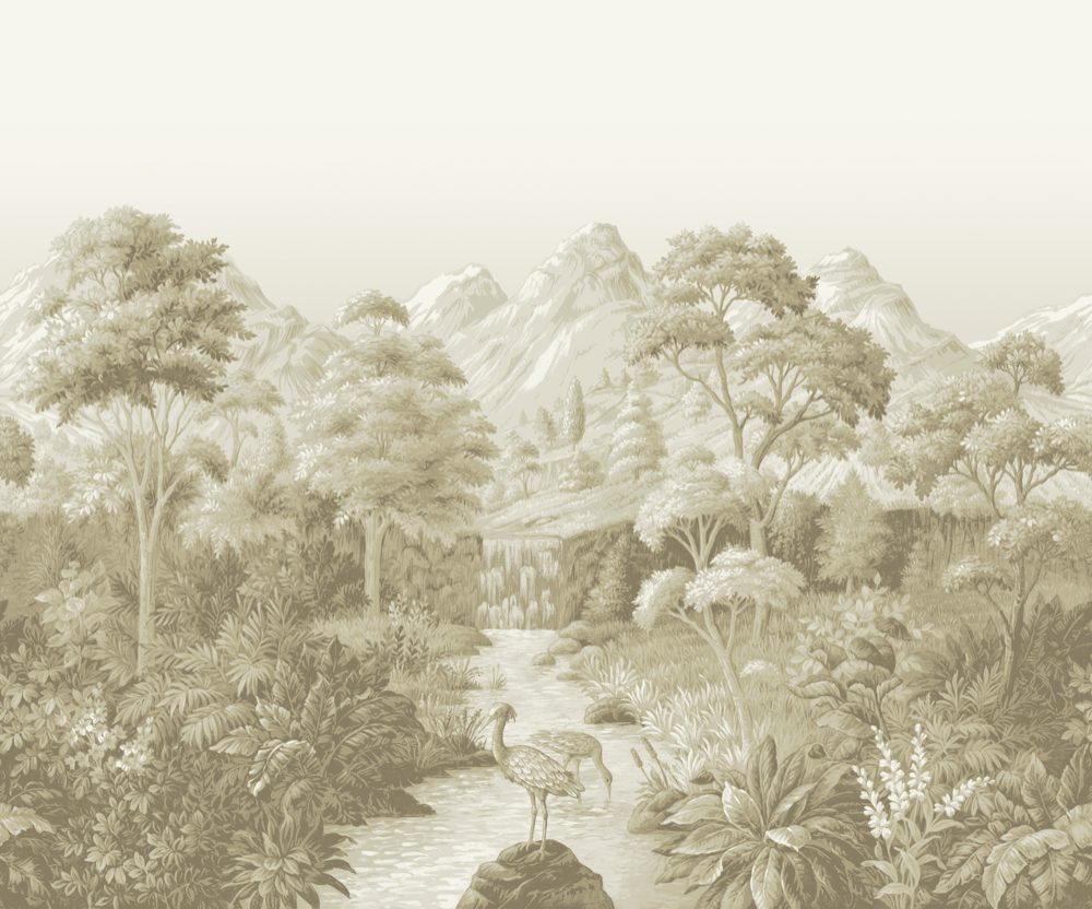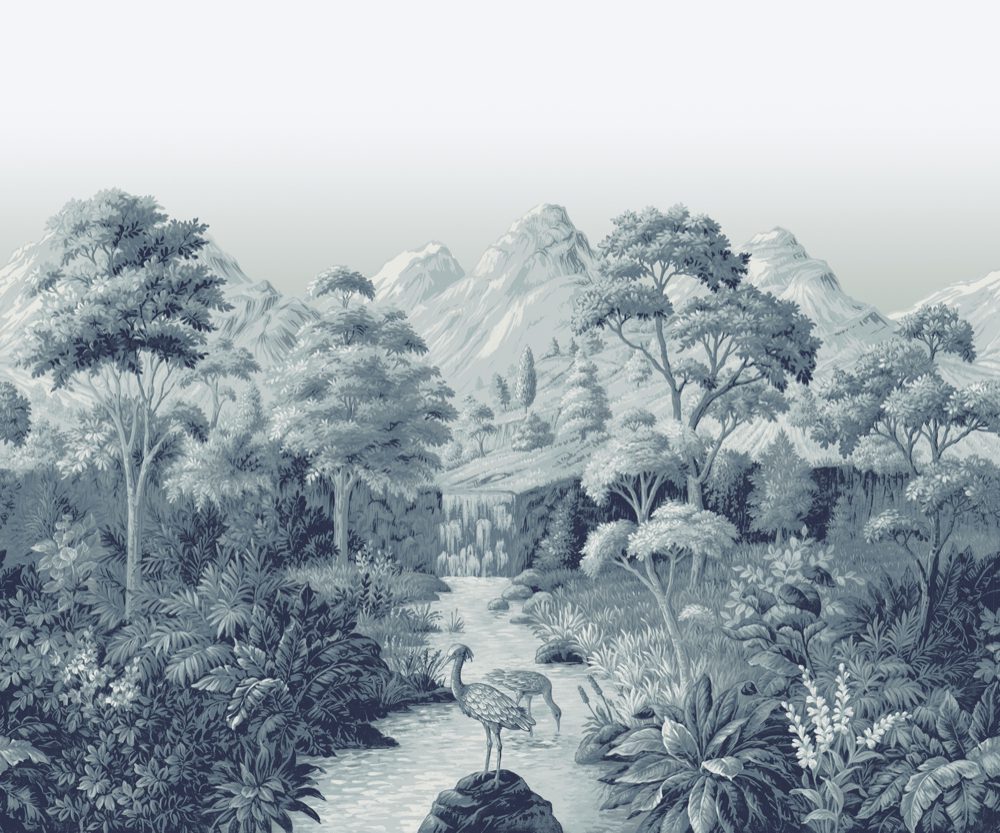 A delicately painted interpretation of a gentle waterfall scene, Malvern is the feature mural of the Designology collection available in four contemporary colour ways, including Charcoal as featured, Neutral, Pale Gold and Teal. Evoke a sense of calm and tranquility by pairing Malvern with the complementary Hampshire and Herringbone textural wallpapers.