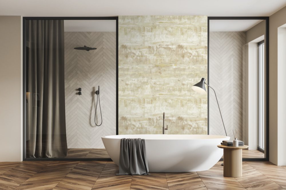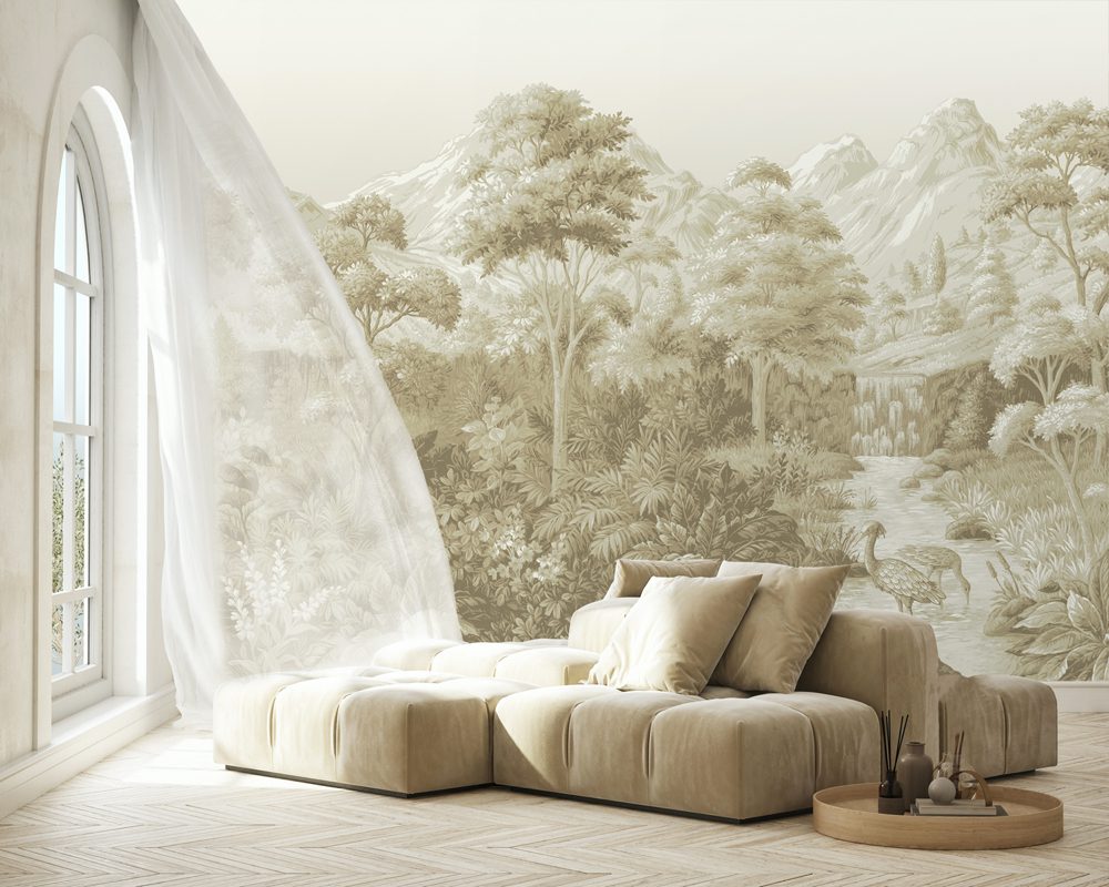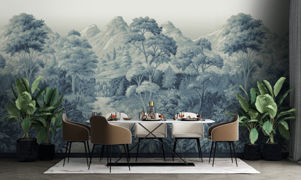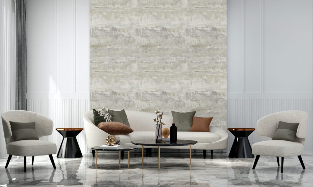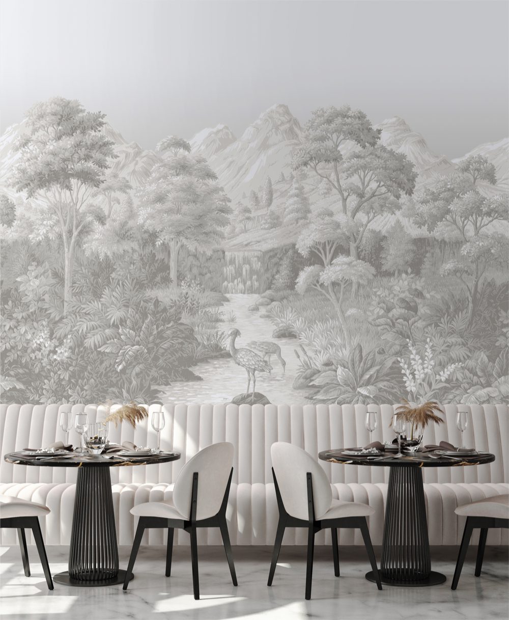 A delicately painted interpretation of a gentle waterfall scene, Malvern is the feature mural of the Designology collection available in four contemporary colour ways, including Charcoal as featured, Neutral, Pale Gold and Teal. Evoke a sense of calm and tranquility by pairing Malvern with the complementary Hampshire and Herringbone textural wallpapers.