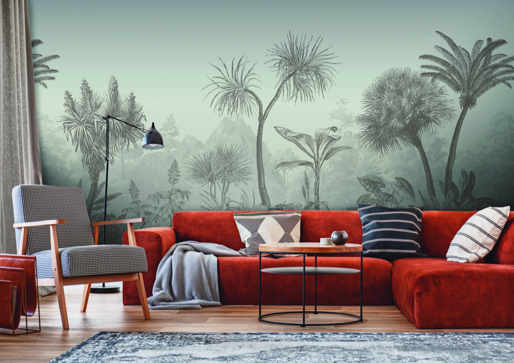 Drawing inspiration from the 1920s and Hollywood glamour Sketchtwenty3 have created a luxurious range combining contemporary metallic palm designs with geometric art deco influences. This uber modern collection includes a floor to ceiling digital palm mural, sure to transform any room into a jungle paradise.