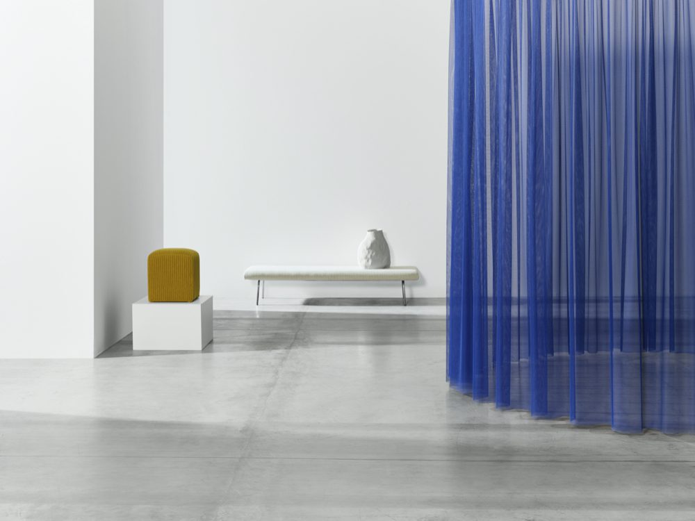Knitted curtain with a distinct finish and undulating net structure which emerges as you approach. The lightweight fabric provides a beautiful play of light while allowing you to maintain contact with everything around you. The curtains are available in 15 different colours, some strong but not so powerful that they take over. Rather, the sheer quality shifts like a veil against other surfaces, its playful. natural tone flowing through the space. Despite this shifting character, Sway retains its shape over time. Based on a classic technique, the fabric nevertheless has a modern appearance. The letter W may be found both in the name and woven into the fabric’s structure. Bearing in mind that Sway means both to undulate and to persuade, the very name also says something of the textile’s properties.