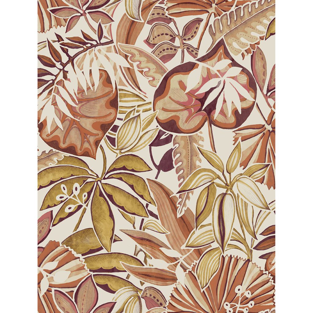 Terracotta peel and stick wallpaper by Caroline et Bettina with tropical-chic style