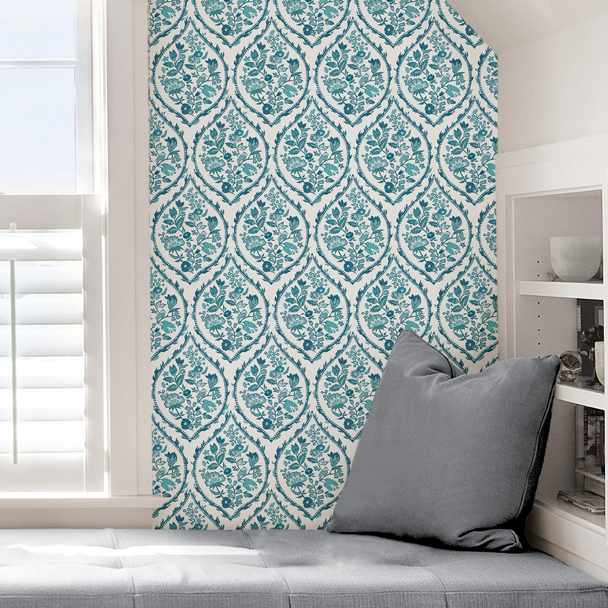 Teal ogee peel and stick floral wallpaper by Vera Bradley