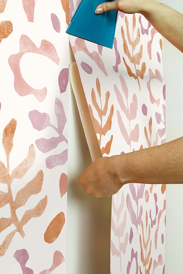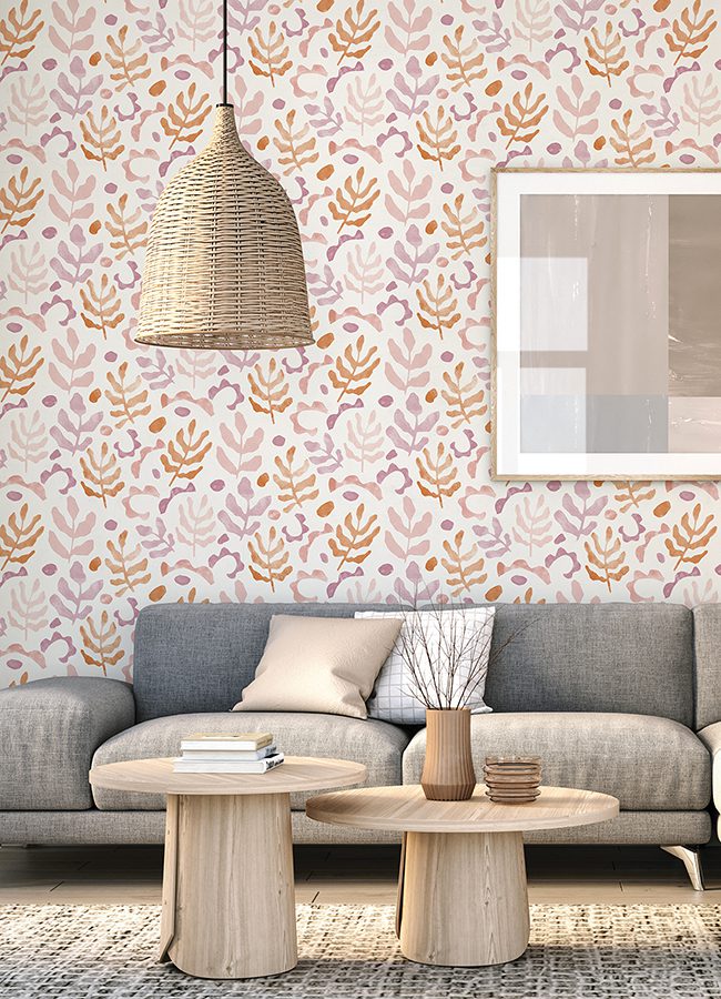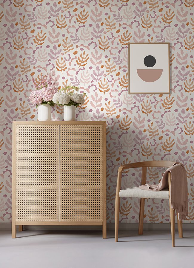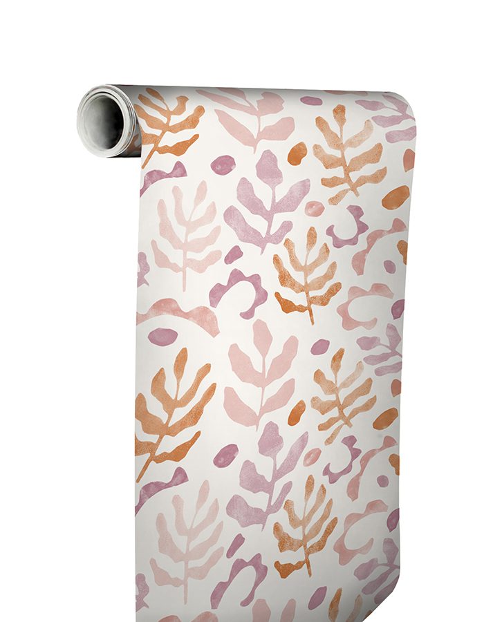 Enjoy a rosy woodland welcome with this artistically styled botanical peel and stick wallpaper.