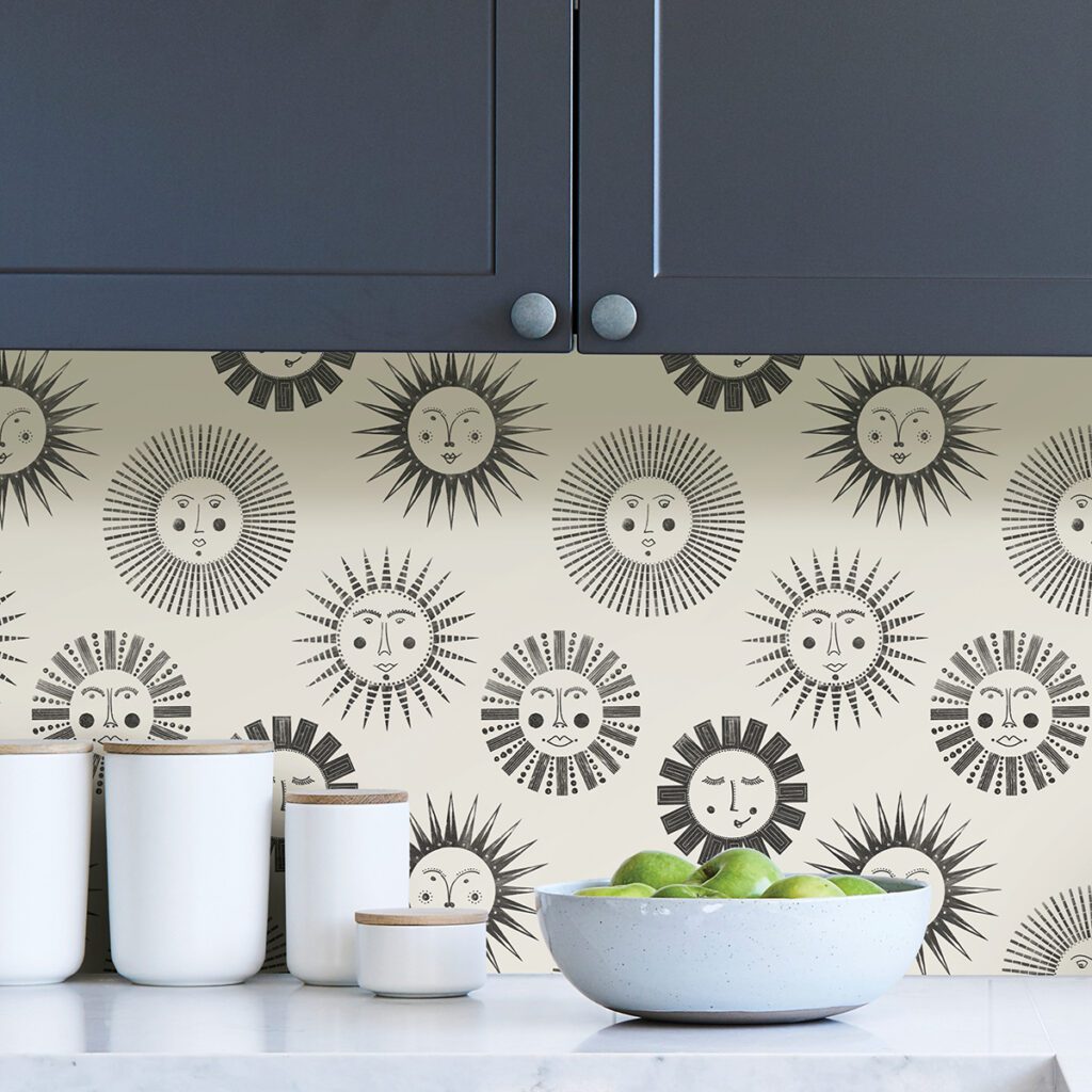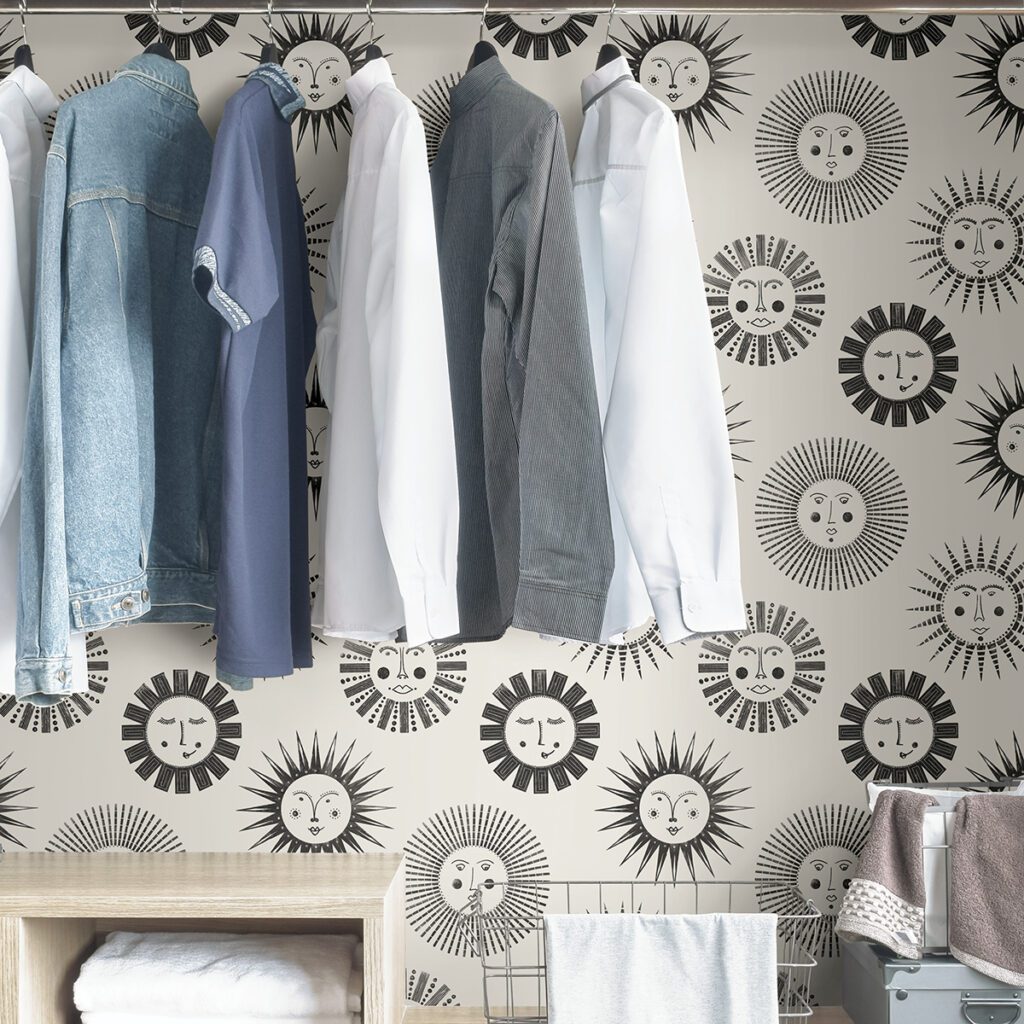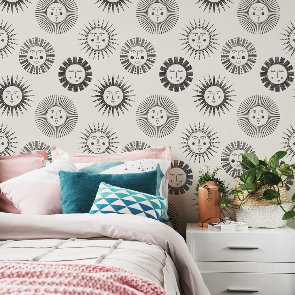 Black and white bohemian sun wallpaper