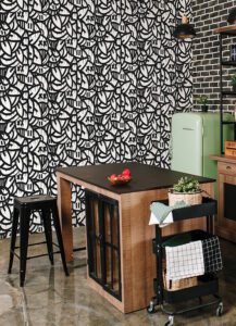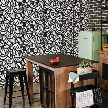 Black and white graffiti peel and stick wallpaper designed by Arm of Casso.