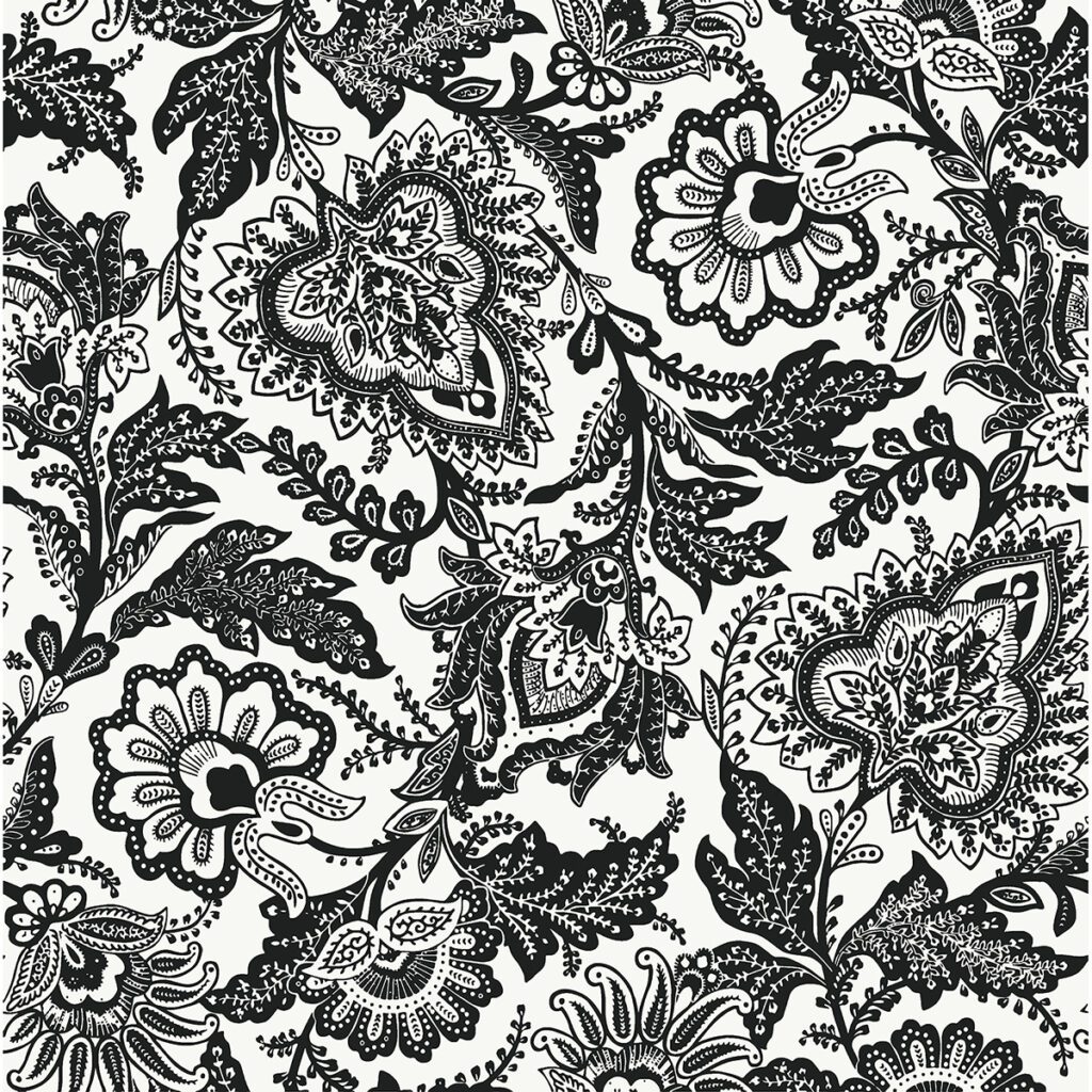 A bold, black and white floral Jacobean peel and stick wallpaper by Vera Bradley