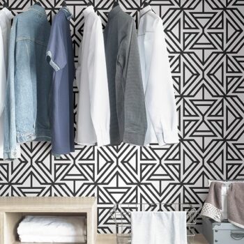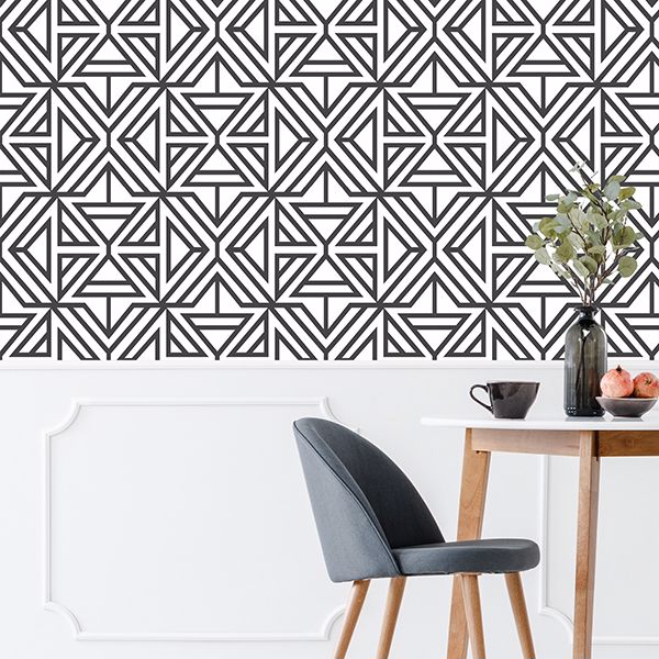 Create a bold and striking look with this contemporary peel and stick wallpaper. Its black geometric pattern pops against a crisp white background.