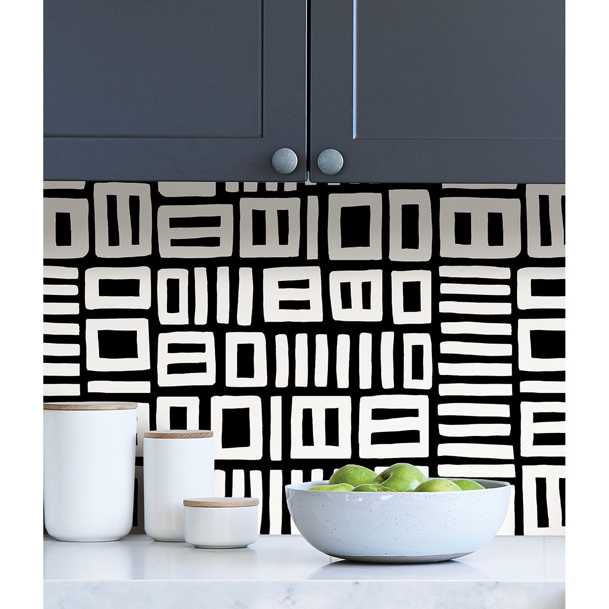 Enjoy a bold look with this hand-painted, black and white peel and stick wallpaper by Hadiya Williams