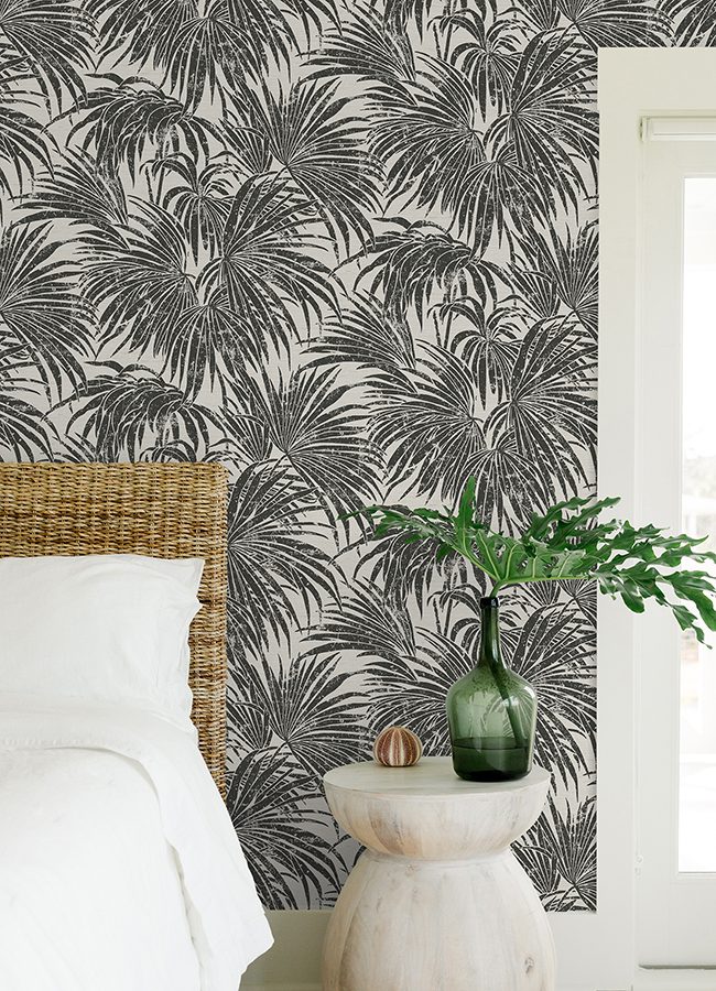 Black and white botanical peel and stick NuWallpaper designed by Egypt Sherrod.