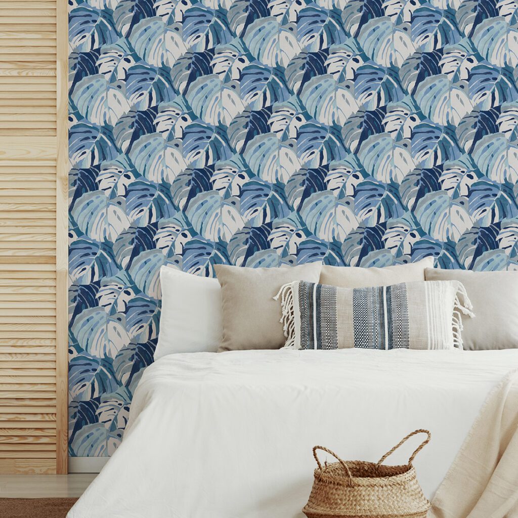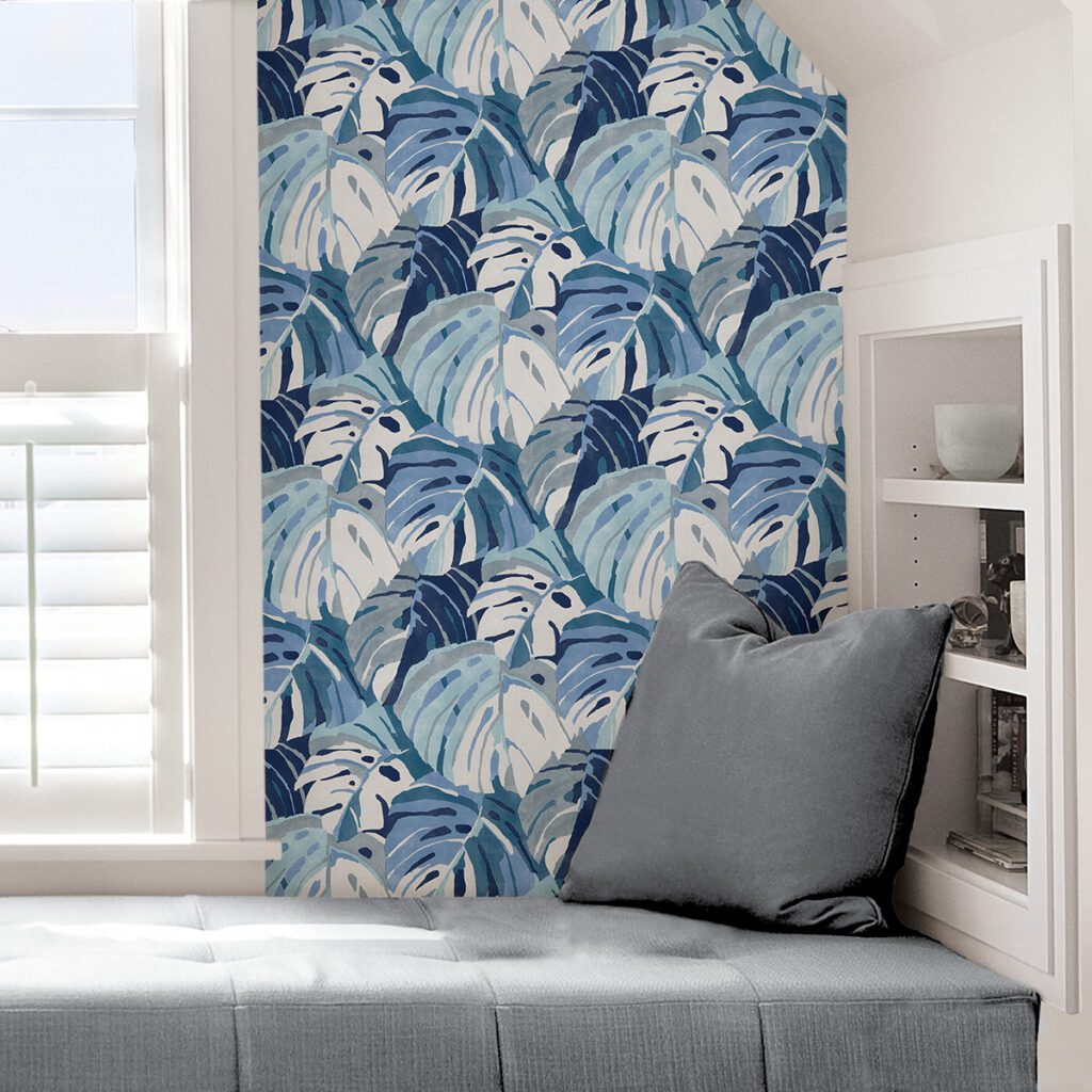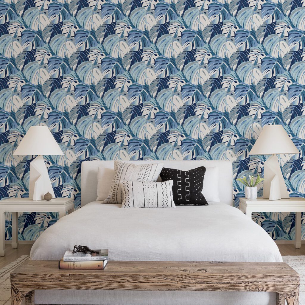Monstera inspired tropical peel and stick wallpaper