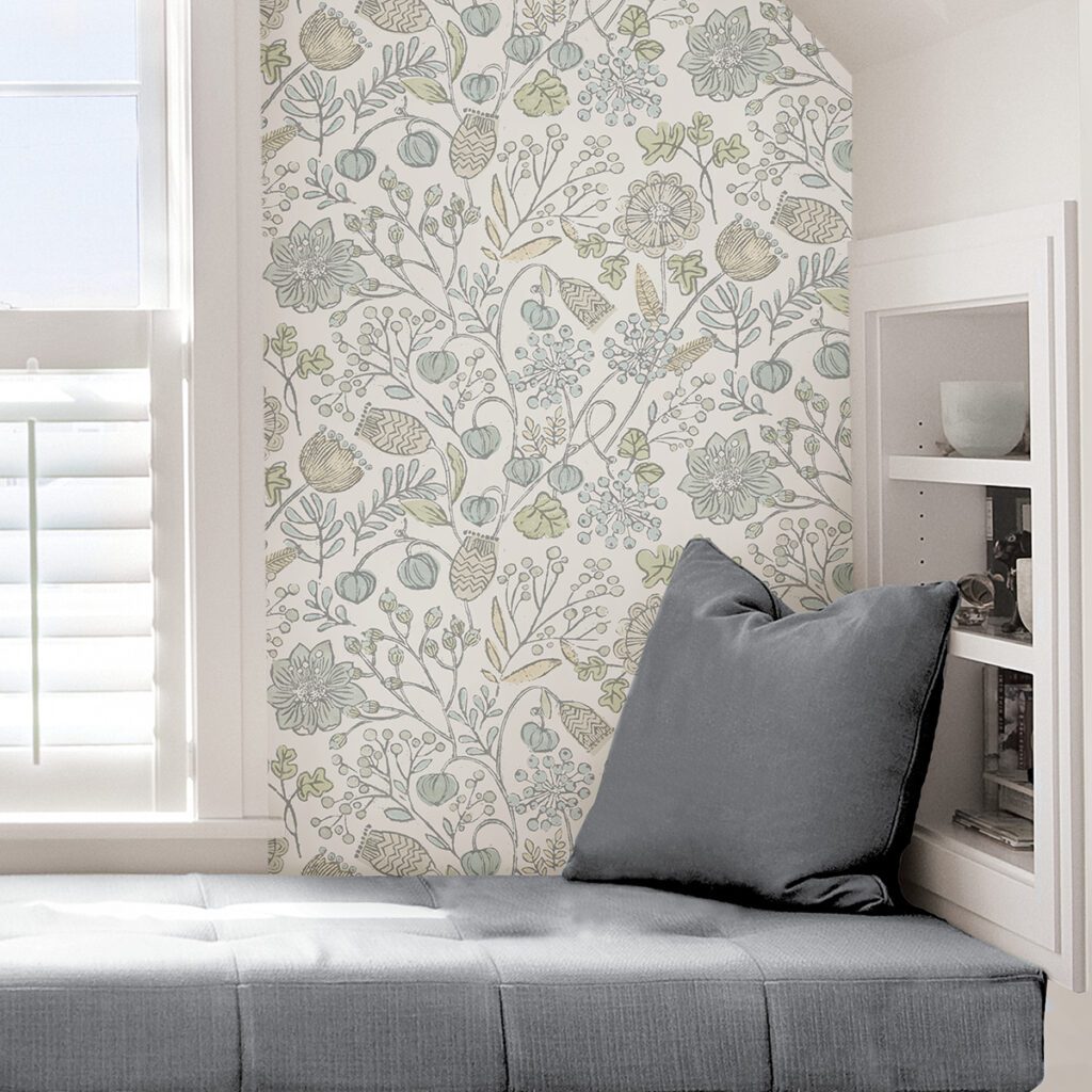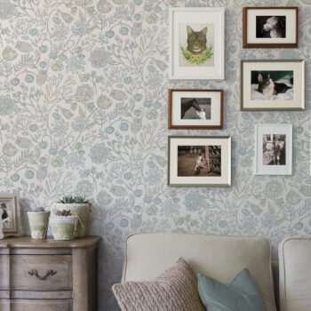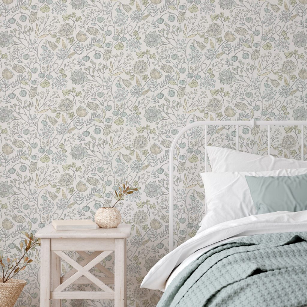 Pastel blue and green floral wallpaper
