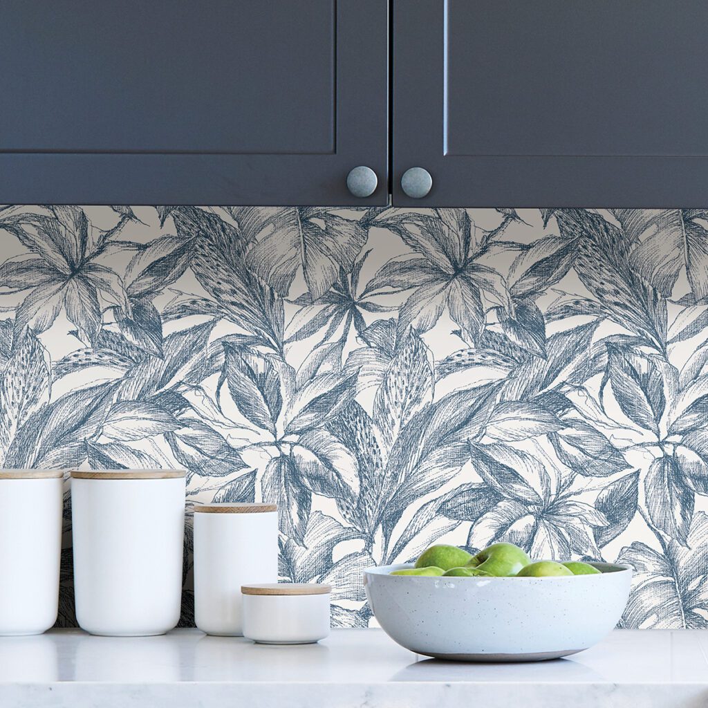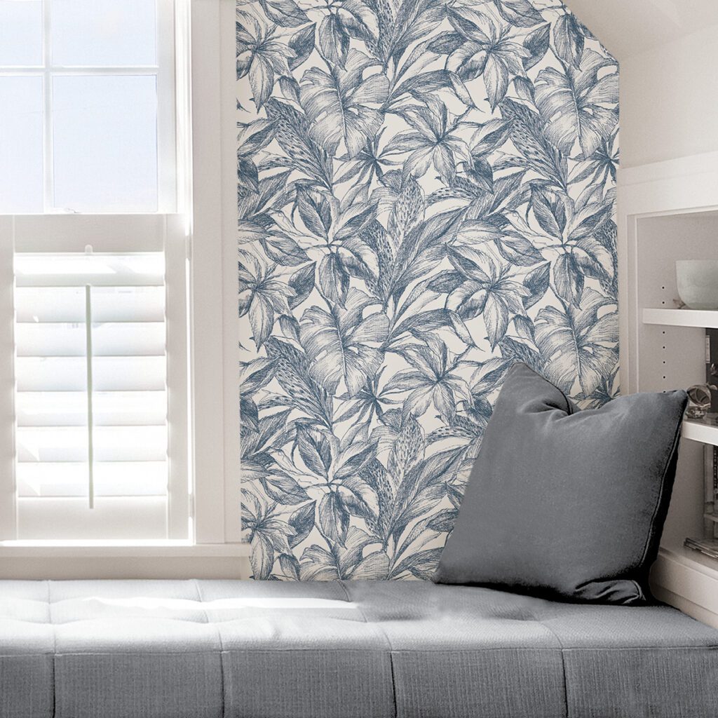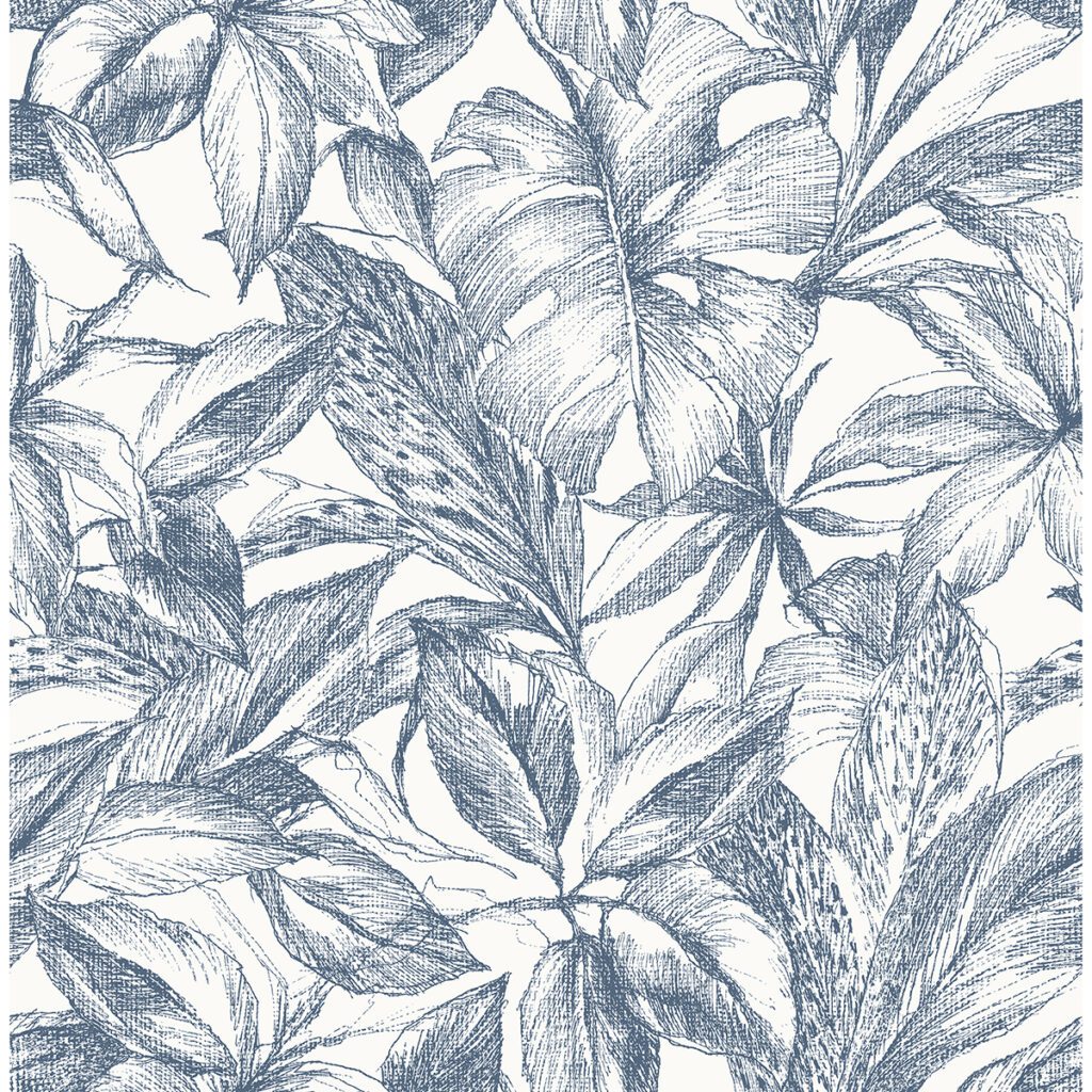 Blue and white tropical leaves peel and stick wallpaper