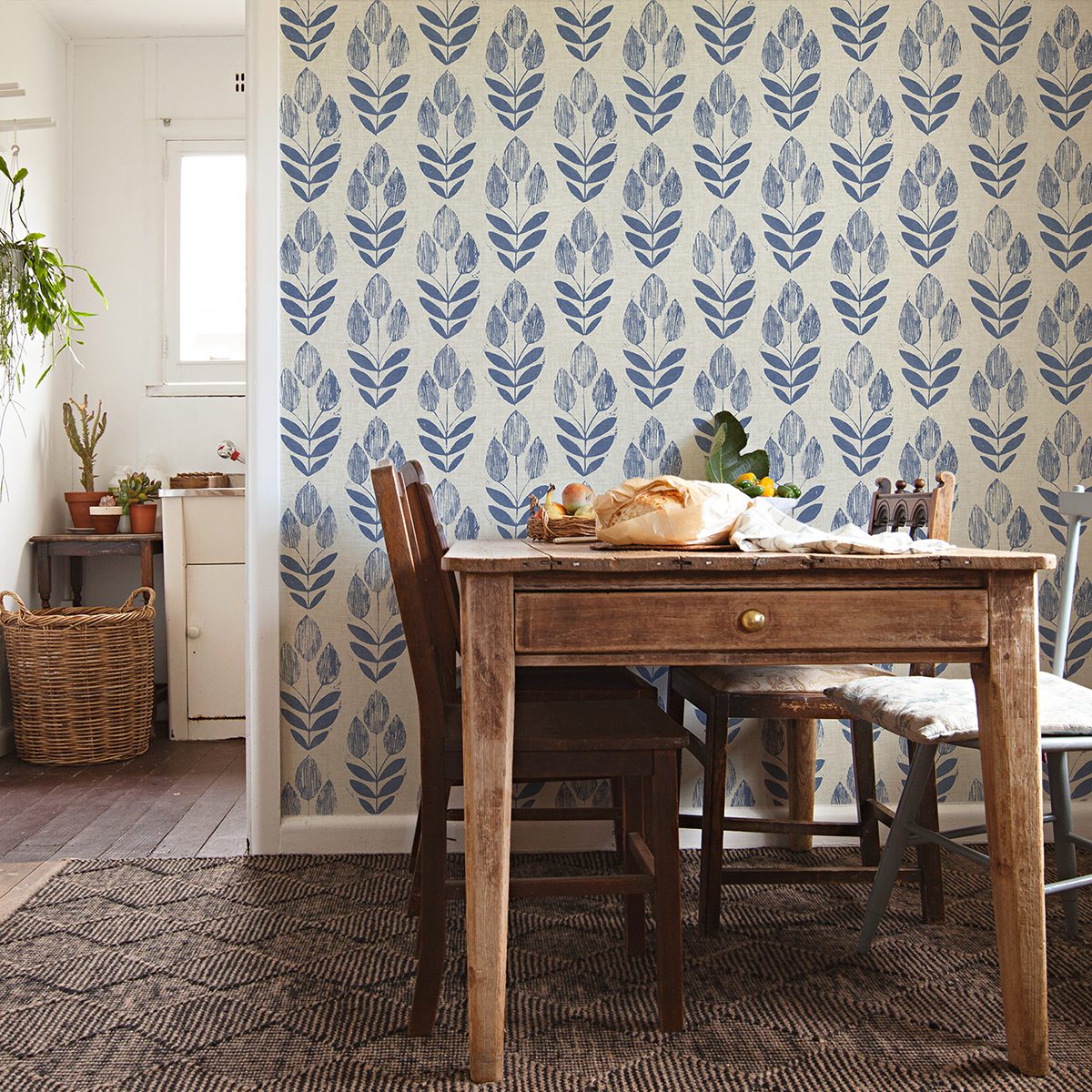 Decorate your walls with this soothing, Scandinavian-inspired tulip peel and stick print. The blue hue brings a calm and chic touch to your décor.