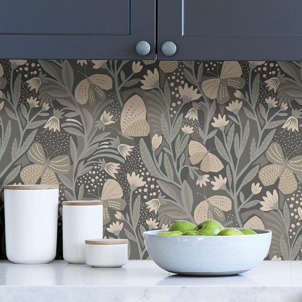 Whimsical butterfly peel and stick wallpaper