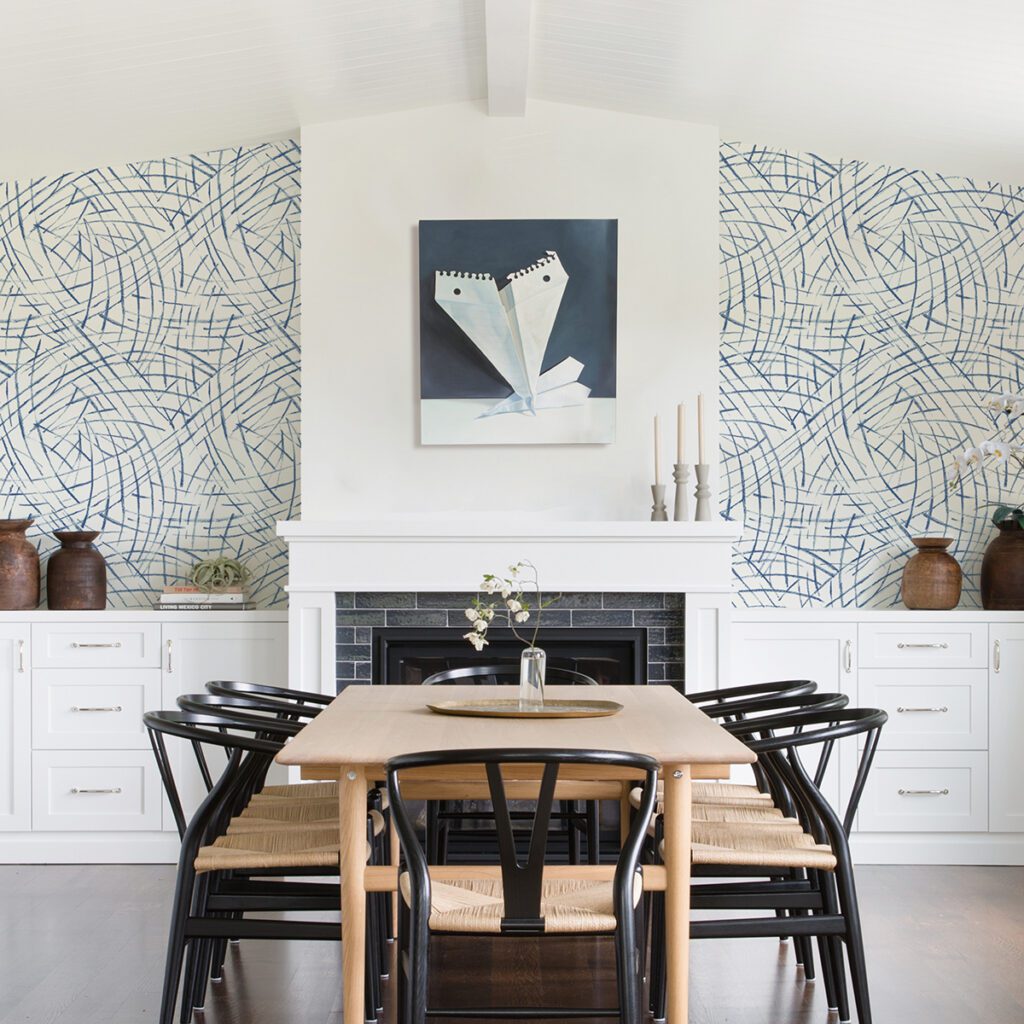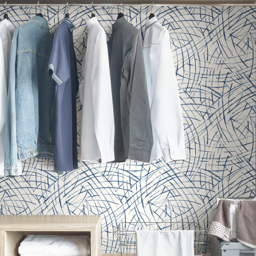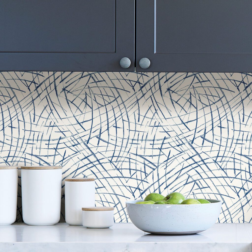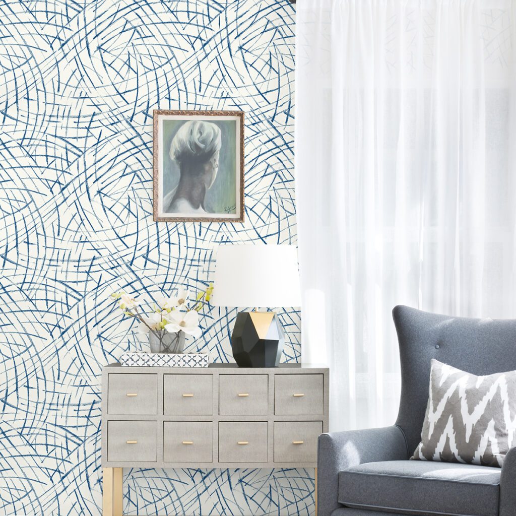 Blue and white abstract peel and stick wallpaper