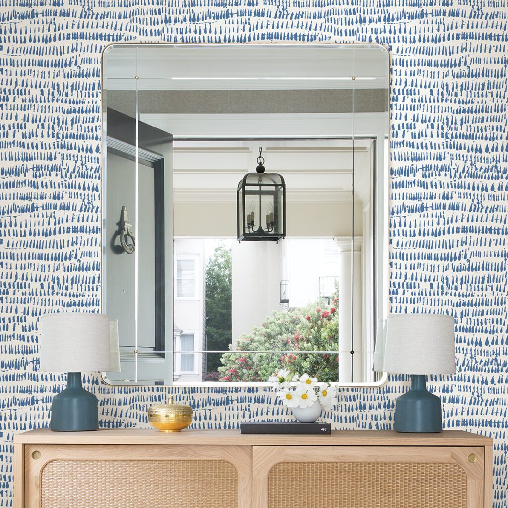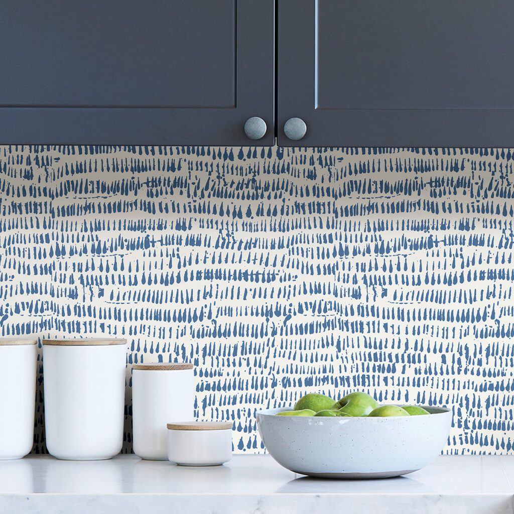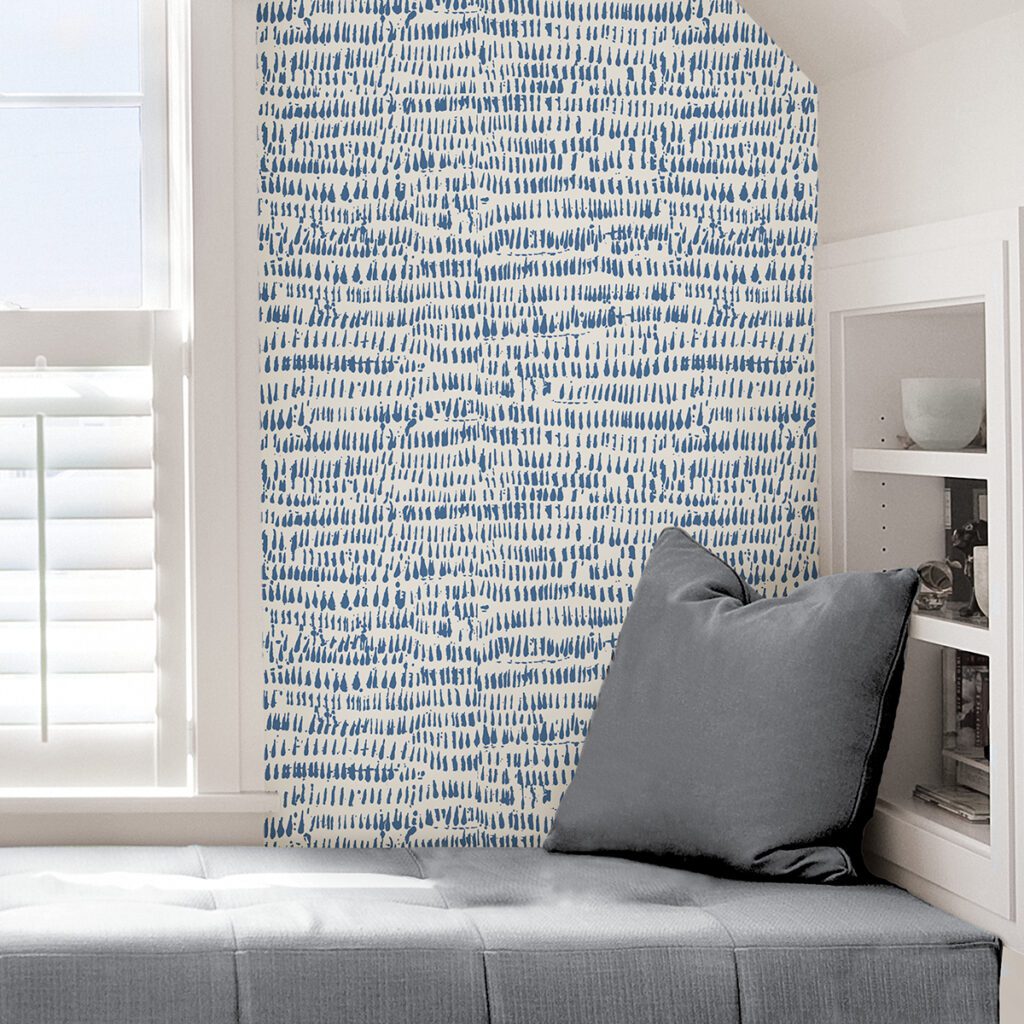 Blue and white abstract peel and stick wallpaper