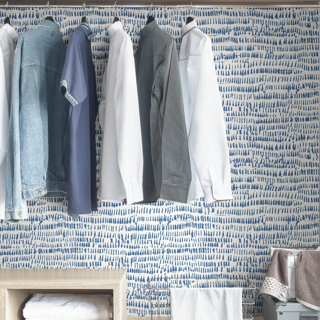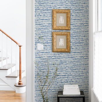 This abstract wallpaper will instantly splash your walls with playful pops of coloured. Blue brushstrokes against a crisp white backdrop makes for an utterly modern design feature.