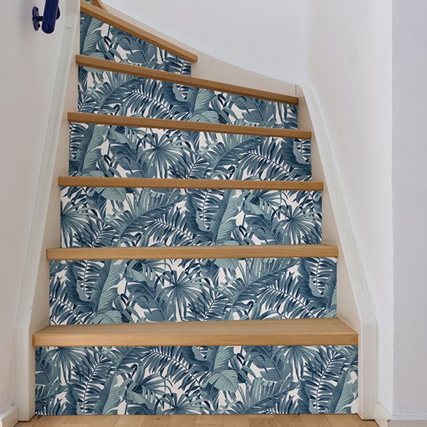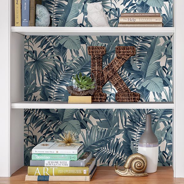 Tropical blue palm and banana leaf print