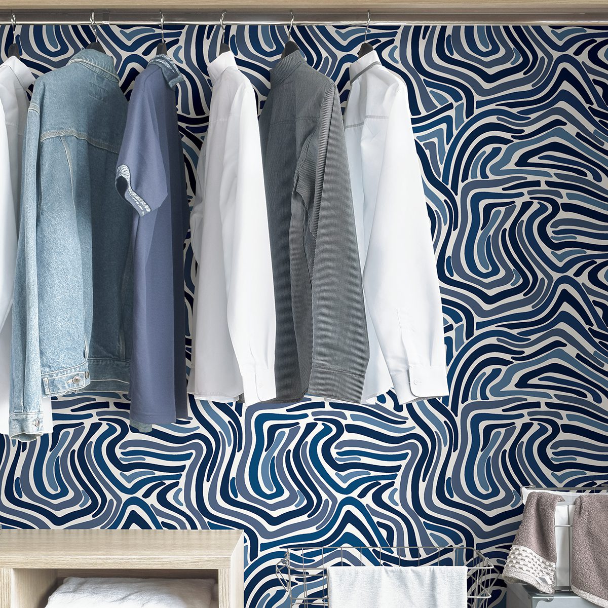 Blue abstract geometric peel and stick wallpaper