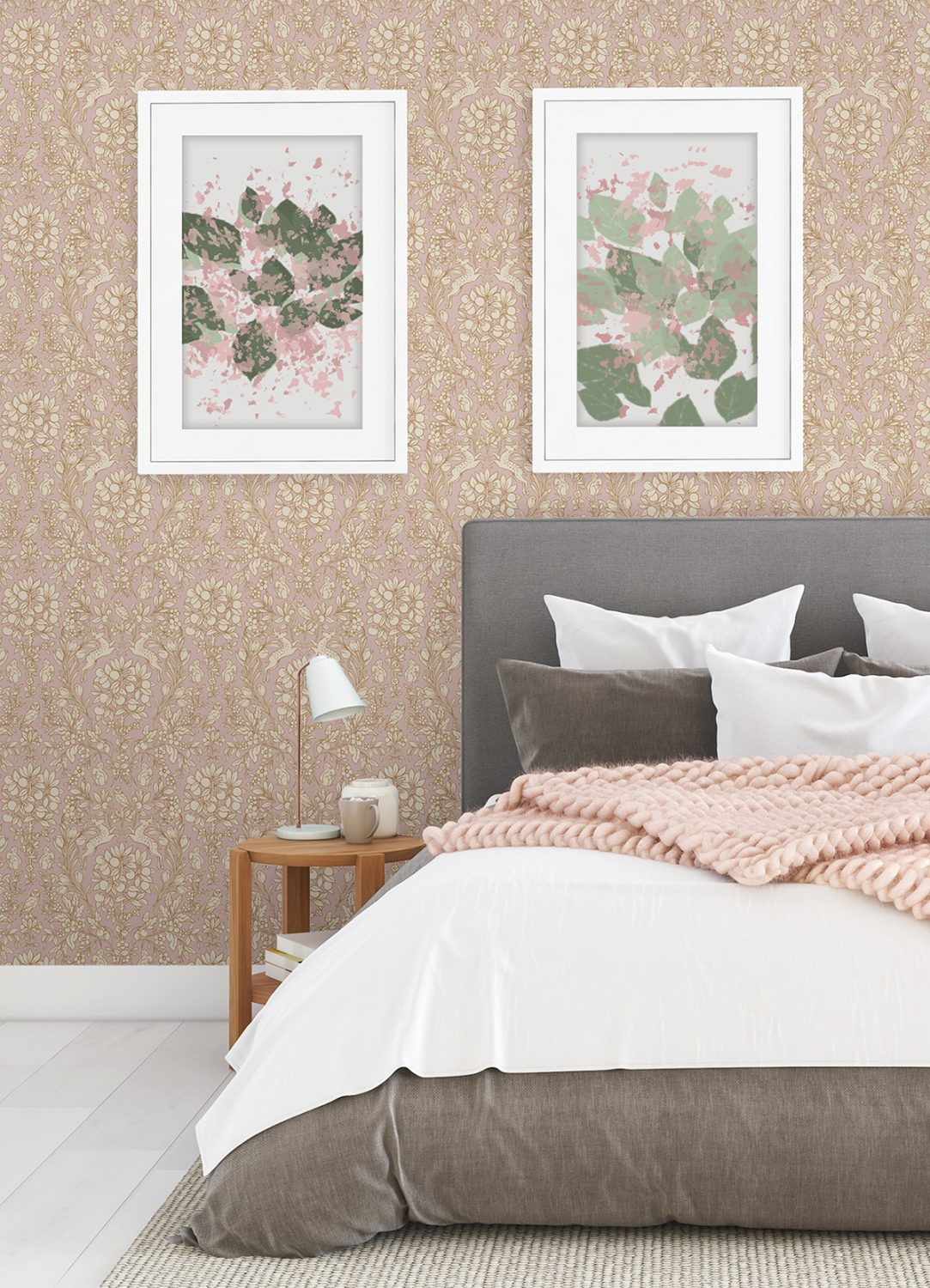 Whimsical blush peel and stick wallpaper with Scandinavian styling